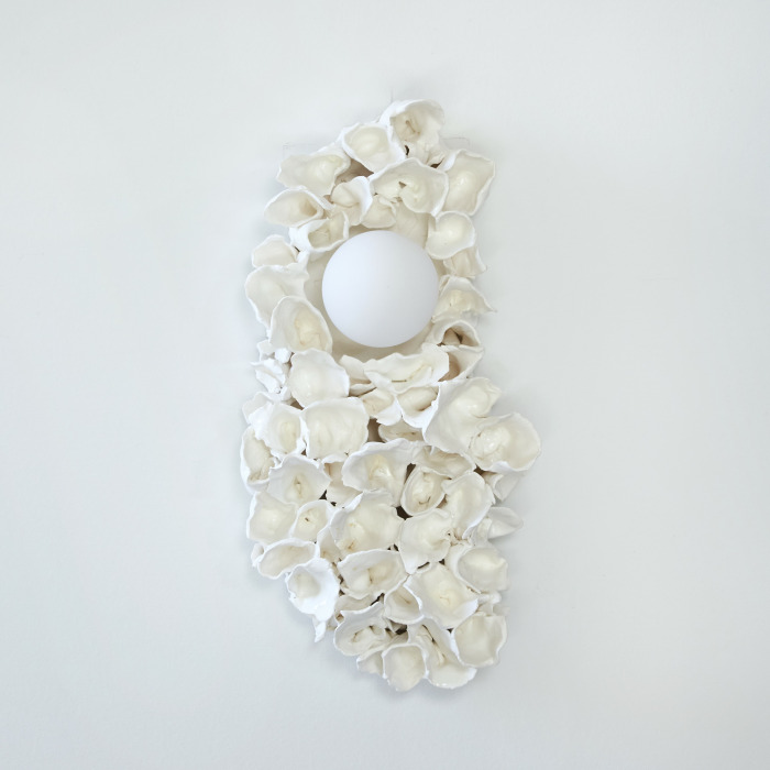 “Ceramics have been a place of surrender and peace, being mostly self-taught has allowed me to spend endless hours in discovery- not only in discovery of the ceramic materials but pushing the limits of lighting and balance and the assembly needed to combine both ceramics and light”.
