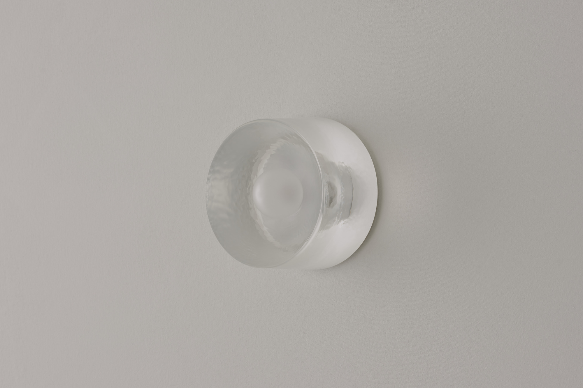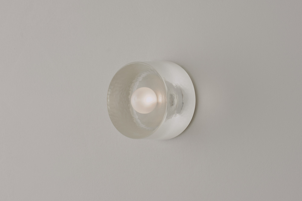 The Anton series is an exploration of cast materials, hand-worked to capture the qualities of each finish. The central lamp illuminates the face and reflects light.
