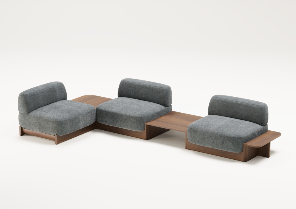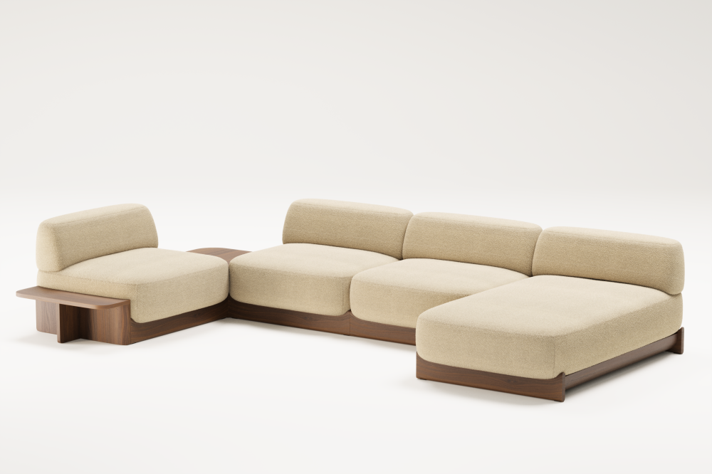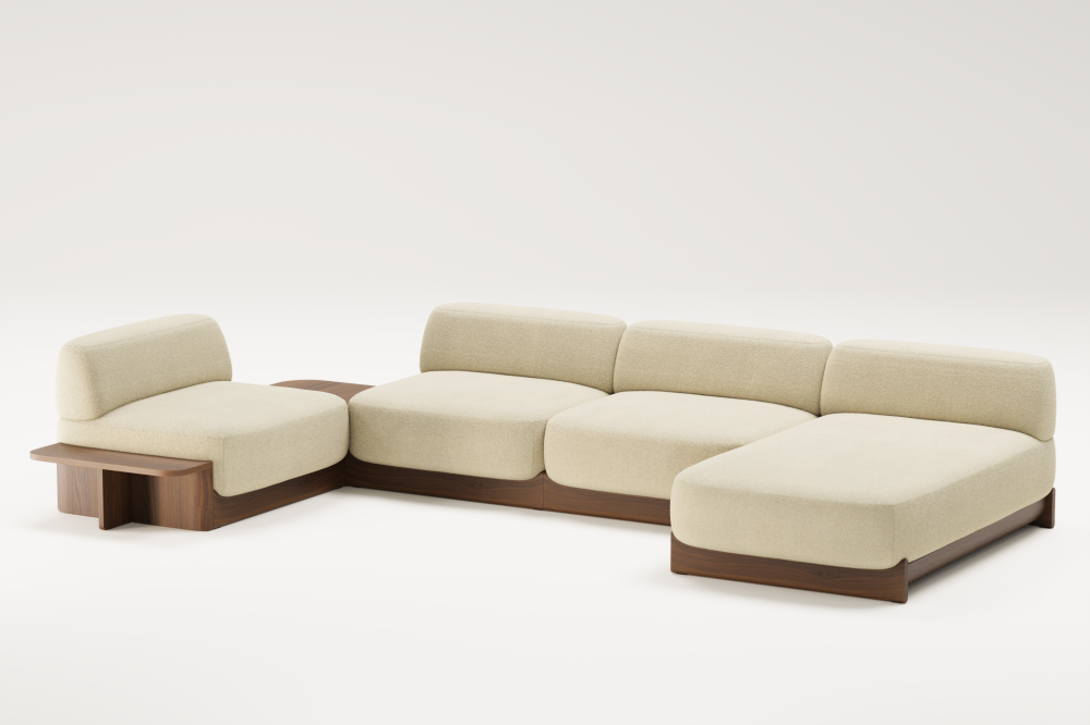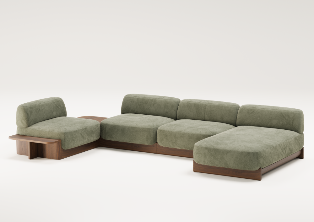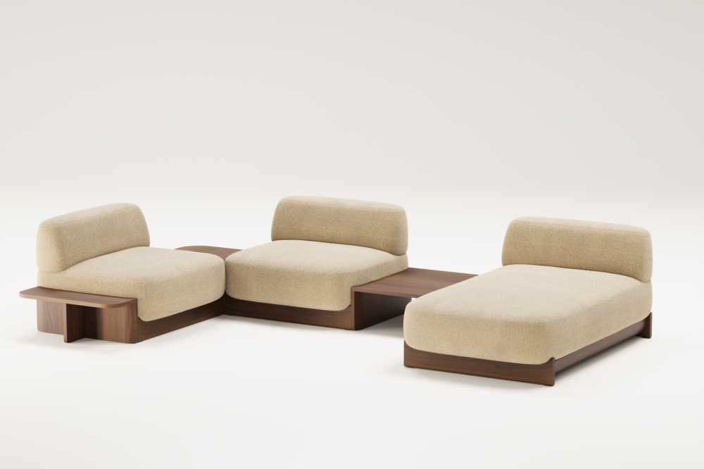 Dome is a modern reinterpretation of the iconic 1970s modular sofas. This collection combines round, upholstered volumes with a solid wood base, creating a blend of coziness and geometric elegance.