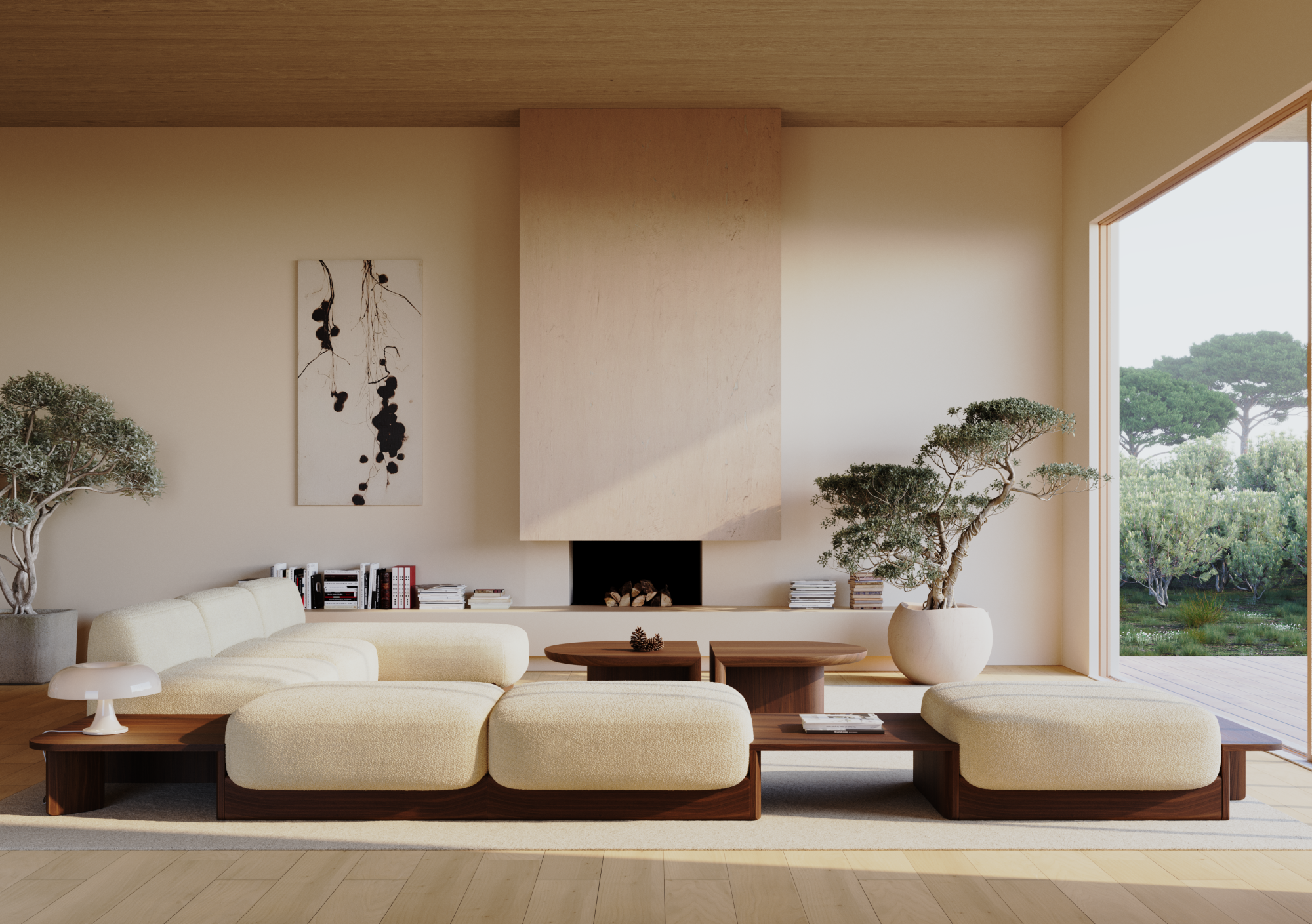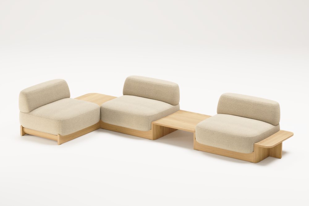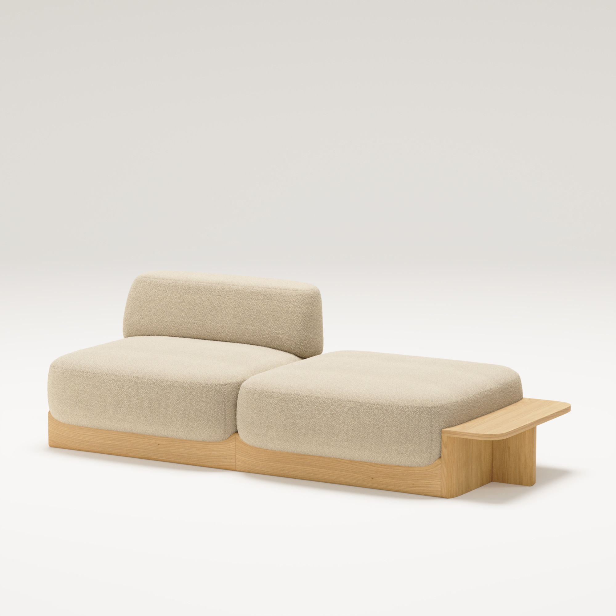 Dome is a modern reinterpretation of the iconic 1970s modular sofas. This collection combines round, upholstered volumes with a solid wood base, creating a blend of coziness and geometric elegance.