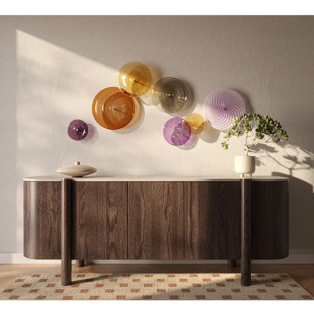 Tracy Glover uses traditional Italian techniques to craft her exuberant glassworks. Each is uniquely handblown to order in her Pawtucket, RI studio. Tracy has a glassmaking BFA from RISD. She honed her craft in a 13th century Belgian convent’s crystal factory and Dale Chihuly’s Pilchuck School, where she was mentored by Venetian maestri-in-residence.