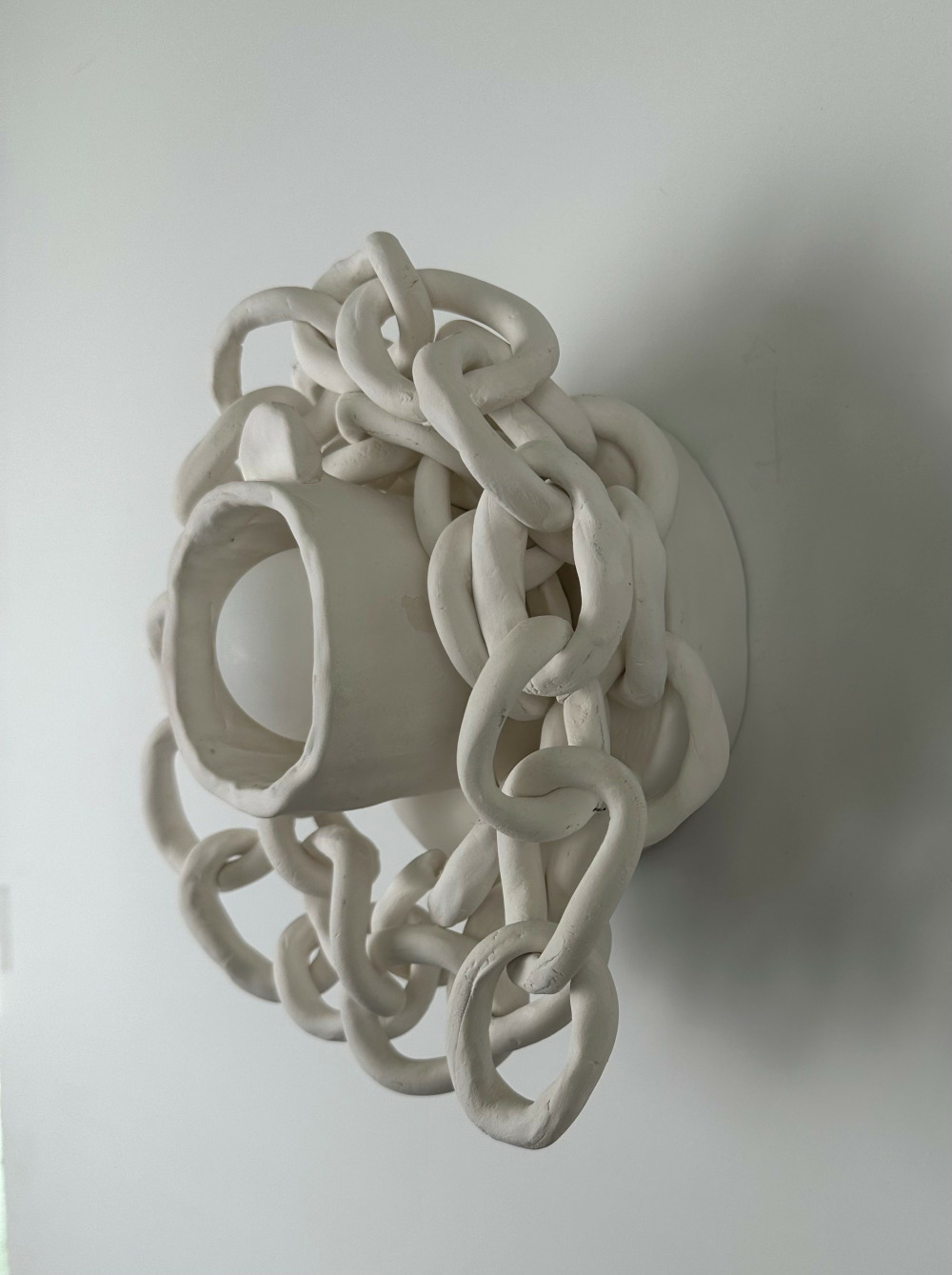 “Ceramics have been a place of surrender and peace, being mostly self-taught has allowed me to spend endless hours in discovery- not only in discovery of the ceramic materials but pushing the limits of lighting and balance and the assembly needed to combine both ceramics and light”.
