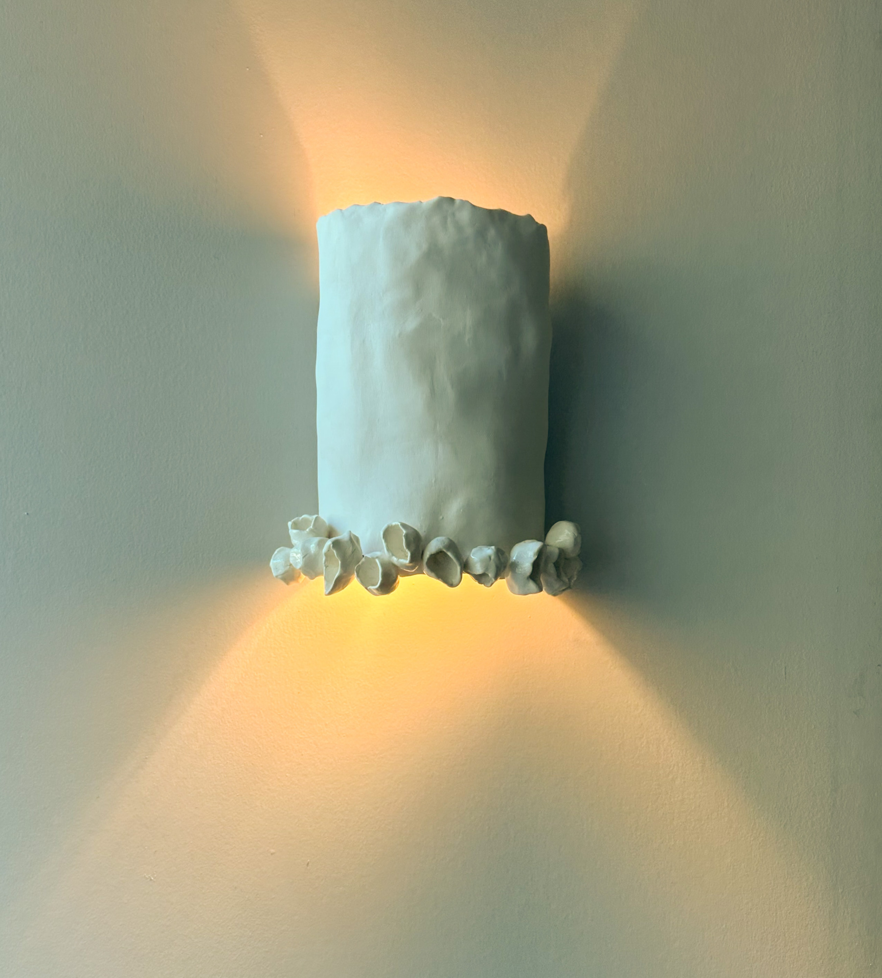 Handcrafted from pure white ceramic, the Eden Sconce brings a sense of serenity and renewal to any space. Its chalky matte glaze gives the form a soft, organic presence, while delicate bud-like adornments, finished in a glossy white, add a touch of quiet elegance. Designed to illuminate both upward and downward, Eden casts light that blooms gently toward the sky while also grounding the room below—an ethereal balance of radiance and form.