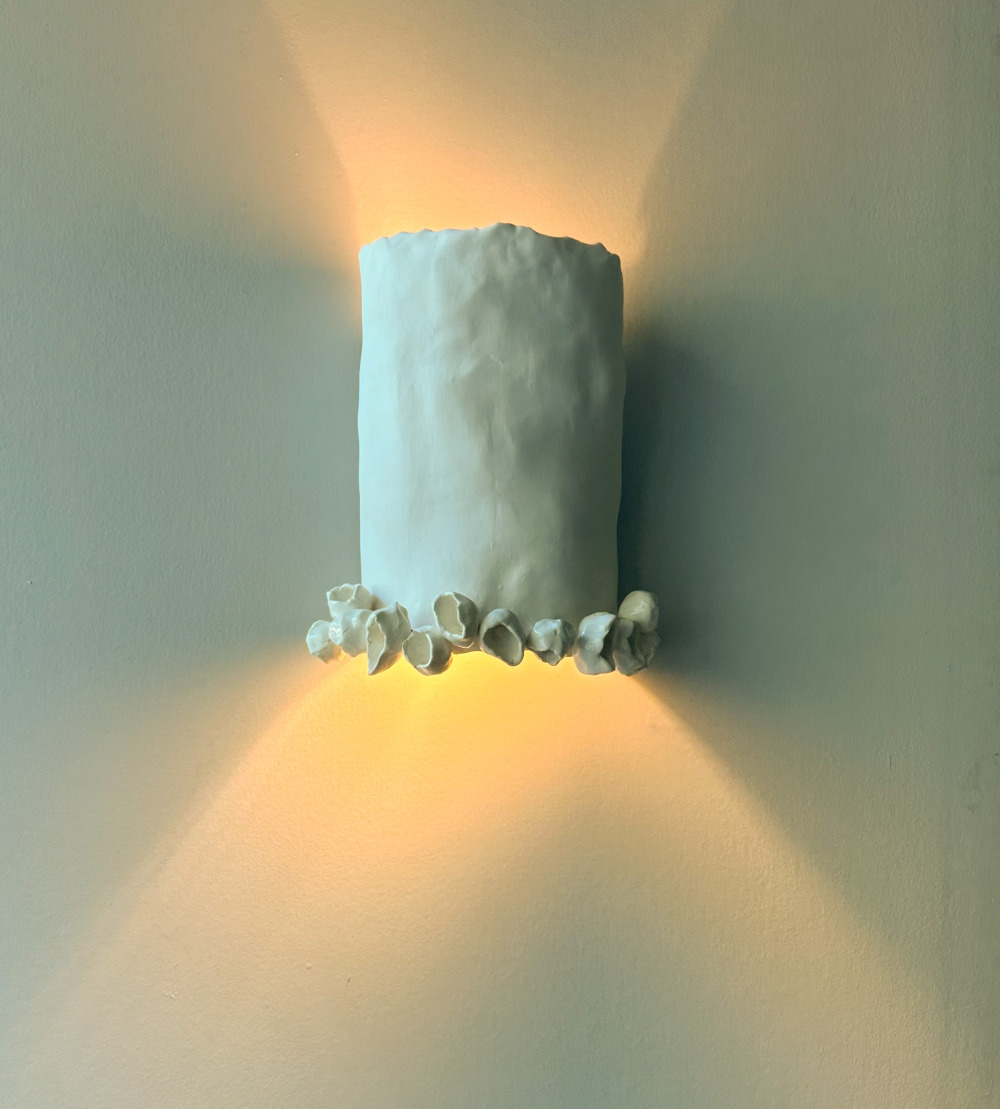 “Ceramics have been a place of surrender and peace, being mostly self-taught has allowed me to spend endless hours in discovery- not only in discovery of the ceramic materials but pushing the limits of lighting and balance and the assembly needed to combine both ceramics and light”.