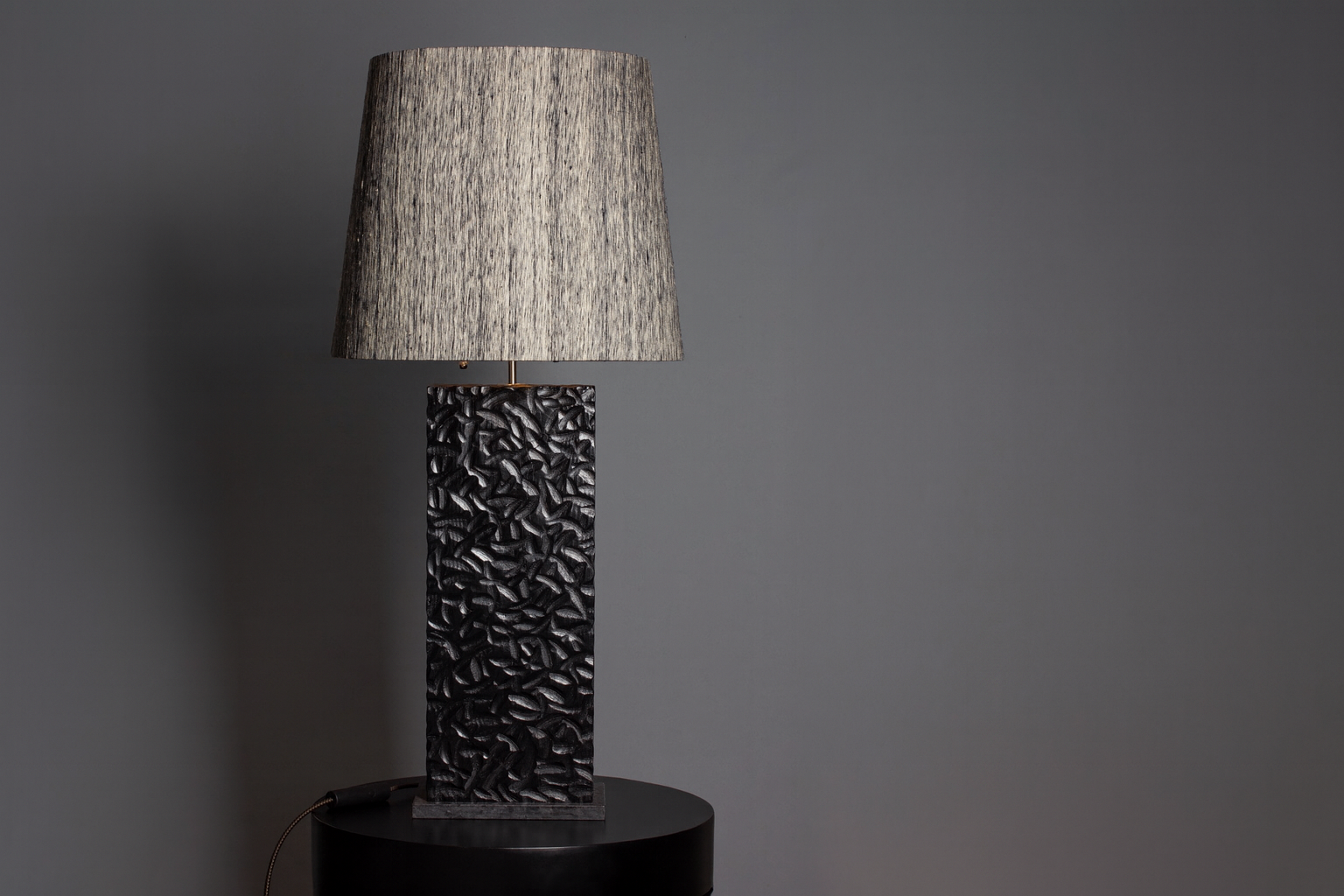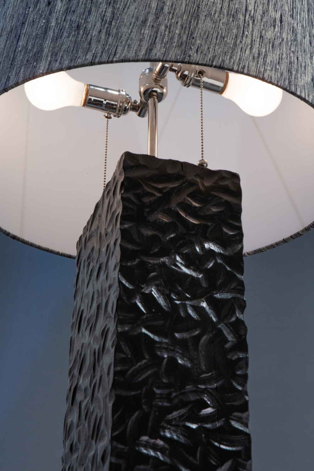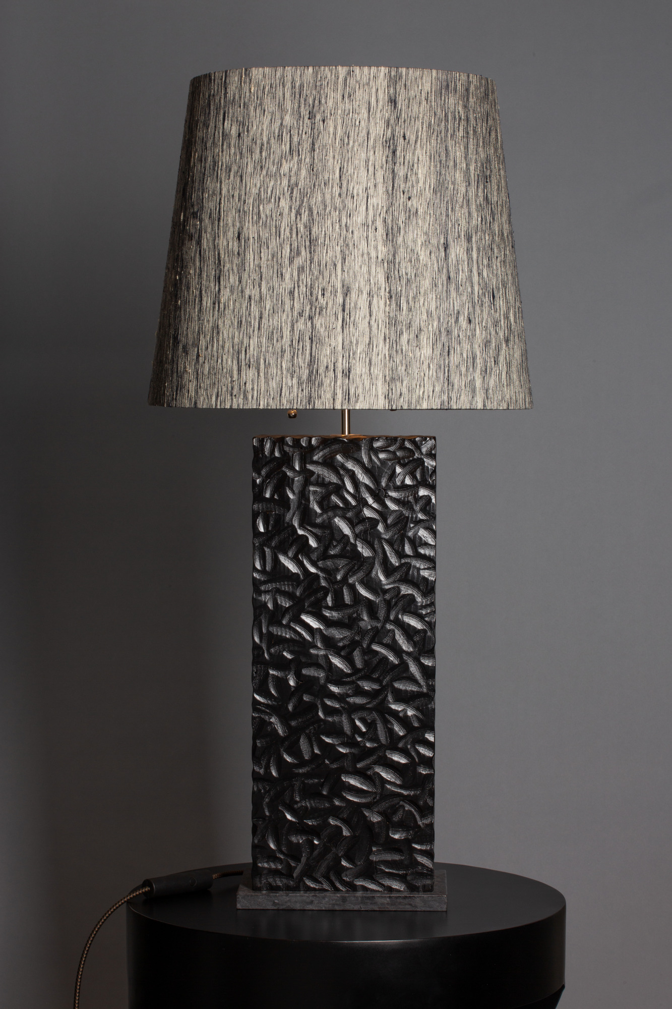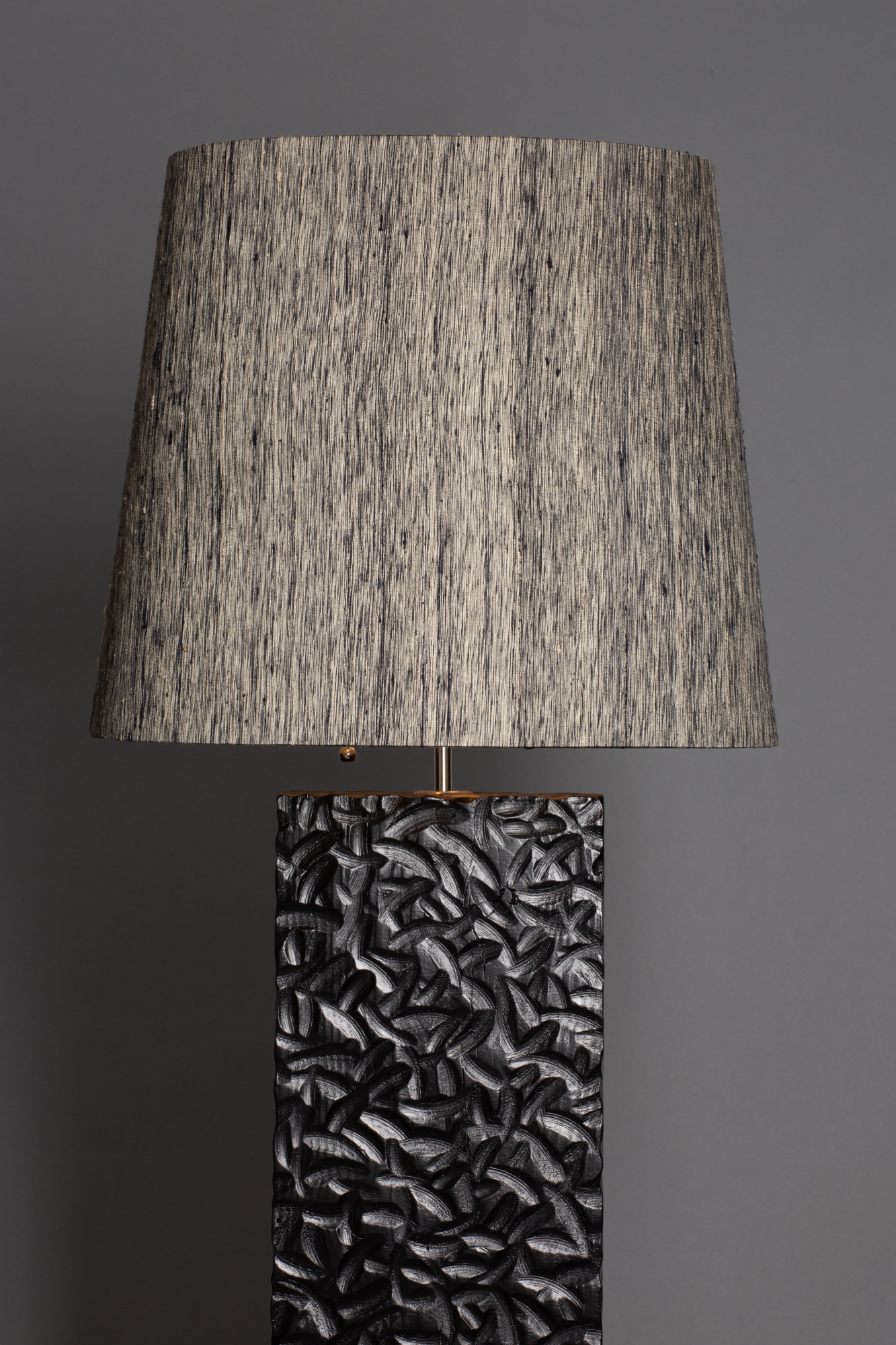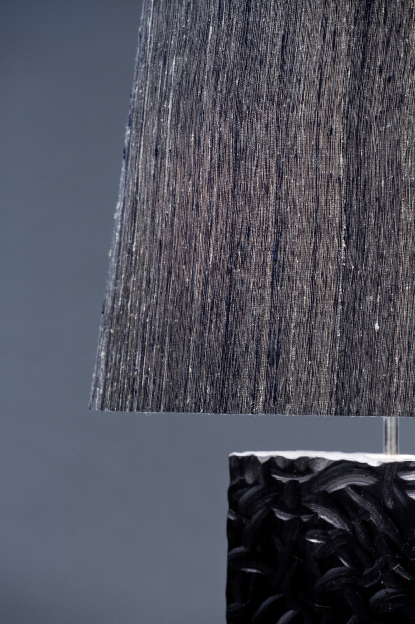 - Custom-made lampshade wrapped in textured, raw 100% silk.