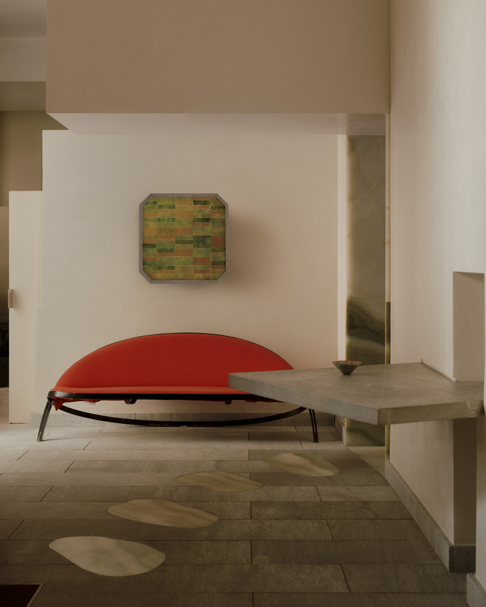 A luminous canvas of light, texture, and pattern. Featuring inset glass in an array of colors and geometric patterns, the Strata Surface Mount combines a low-profile silhouette with high-impact artistry.