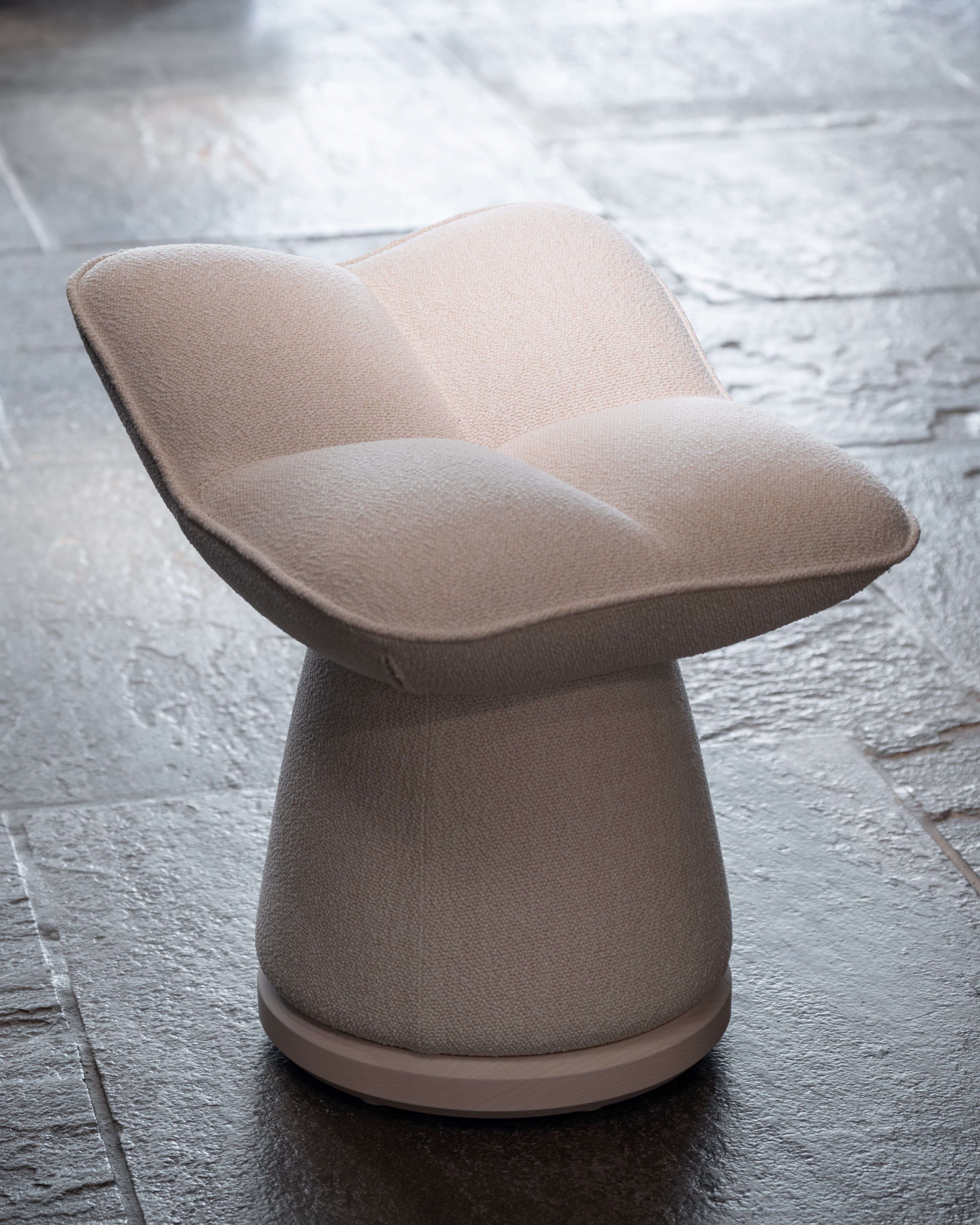 Looking at the market and our needs as a design studio, I noticed a gap for comfortable, versatile, playful, smaller stools that could work in the hospitality and residential sectors. I got so tired of looking at basic cylinders and cubes. We loved the function of a petite ottoman but didn’t connect with the uninspired form. I craved more – a signature piece that would tell a story and have an identity while remaining discreet in nature. All this led to Quadrifoglio. And so, we crushed the sides, perfected the balance and stability, and softened and tailored all corners making it pretty from all angles. I love how light and easy to move around the piece is; how it can dress up or down for the occasion. Like a four-leaf clover, the stool is beautiful as a single accent piece to complement a sofa or grouped as a cluster. Making it outdoor grade was also a priority for us, so we could specify it for lively patios, as accent chairs by the pool, etc. There's something very emotive, inviting and inherently social about Quadrifoglio. It belongs where people congregate.