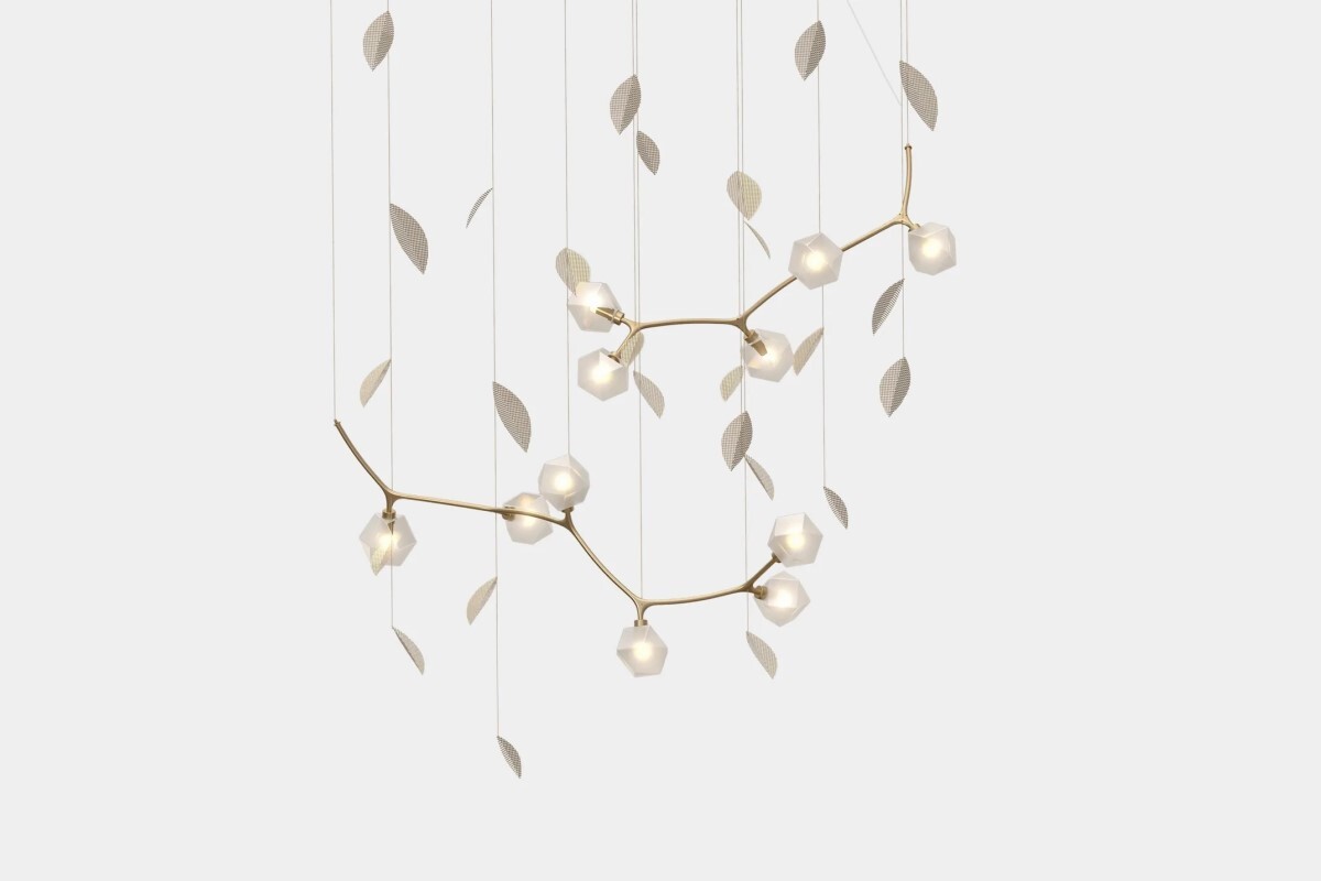 British/Italian duo Giopato & Coombes drew inspiration from the plum blossoms found in Korean spring and created the Maehwa collection. Each piece in the collection uses a mix of opal white, pale pink or smokey grey glass to create a delicate balance of blossoms clustered on brass branches. Available in a selection of chandeliers, pendants and surface mounts, Each piece will create a an elegant statement in any traditional or contemporary space.