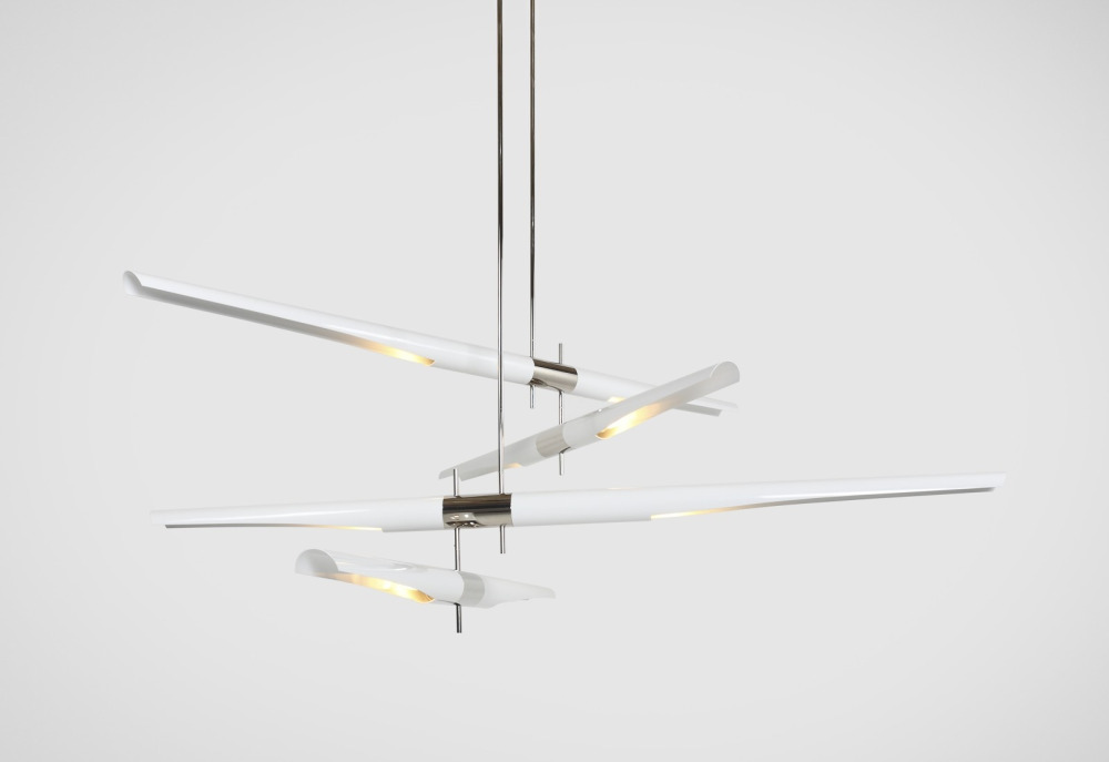 Over the past two decades, his product line has expanded from mainly lighting fixtures to a collection of upholstered seating, side tables and sculptural objects.