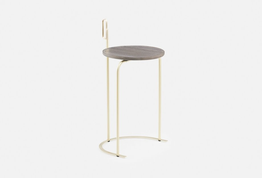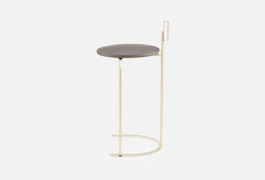 The design concept for this small table originates with the idea of a highly flexible and portable object, something that can be moved around effortlessly and used in different situations—as a small working desk by the sofa or as a small side table for a lounge chair.
