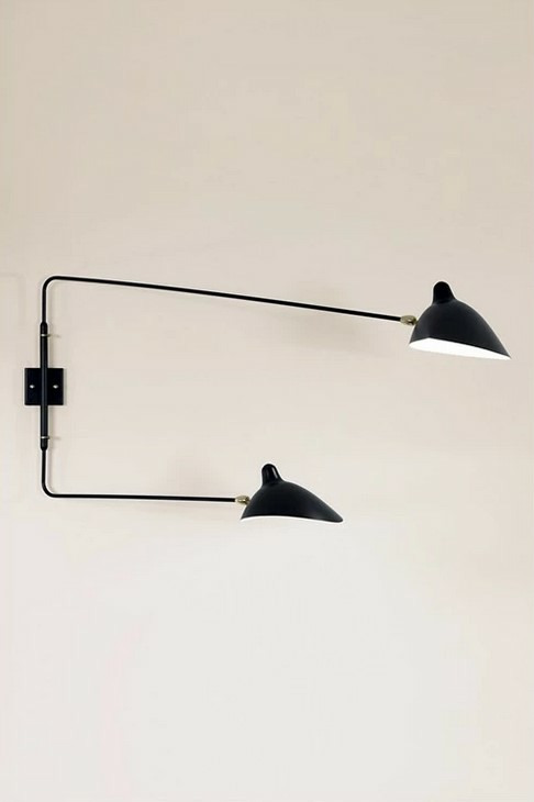 In 1953 Jacques Adnet hired him to design lighting fixtures, an art to which he devoted the rest of his life. Throughout the 1950s Mouille designed large, angular, insect-like wall mounted and standing lamps with several arms and smaller, more curved wall-sconces. Some of his best known designs from the period are his “Oeil” lamp (1953), “Flammes” (1954) and “Saturn” (1958). He worked to achieve a kinetic, sculptural aesthetic that evoked a sense of movement in space. He also claimed his lighting fixtures were “a reaction to the Italian models, which were beginning to invade the market in 1950,” and which he thought to be “too complicated.” His designs from this period were shown mainly at the Steph Simon Gallery in Paris. Towards the end of the 1950s the invention of neon tubes inspired Mouille to create a series of floor lamps that combined incandescence and fluorescence. These designs, called the “Colonnes” collection, had their debut at the 1962 Salon for interior design, and are some of his better known later works.