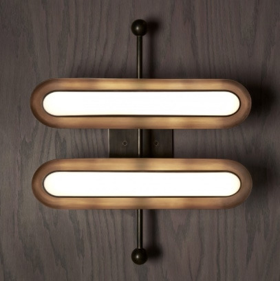 The Circuit series creates rhythm with the repetition of pure shapes. A glowing glass capsule nests in a brass shade, becoming a contained form that multiplies to construct larger fixtures. The Circuit 2 can be ceiling or wall mounted.