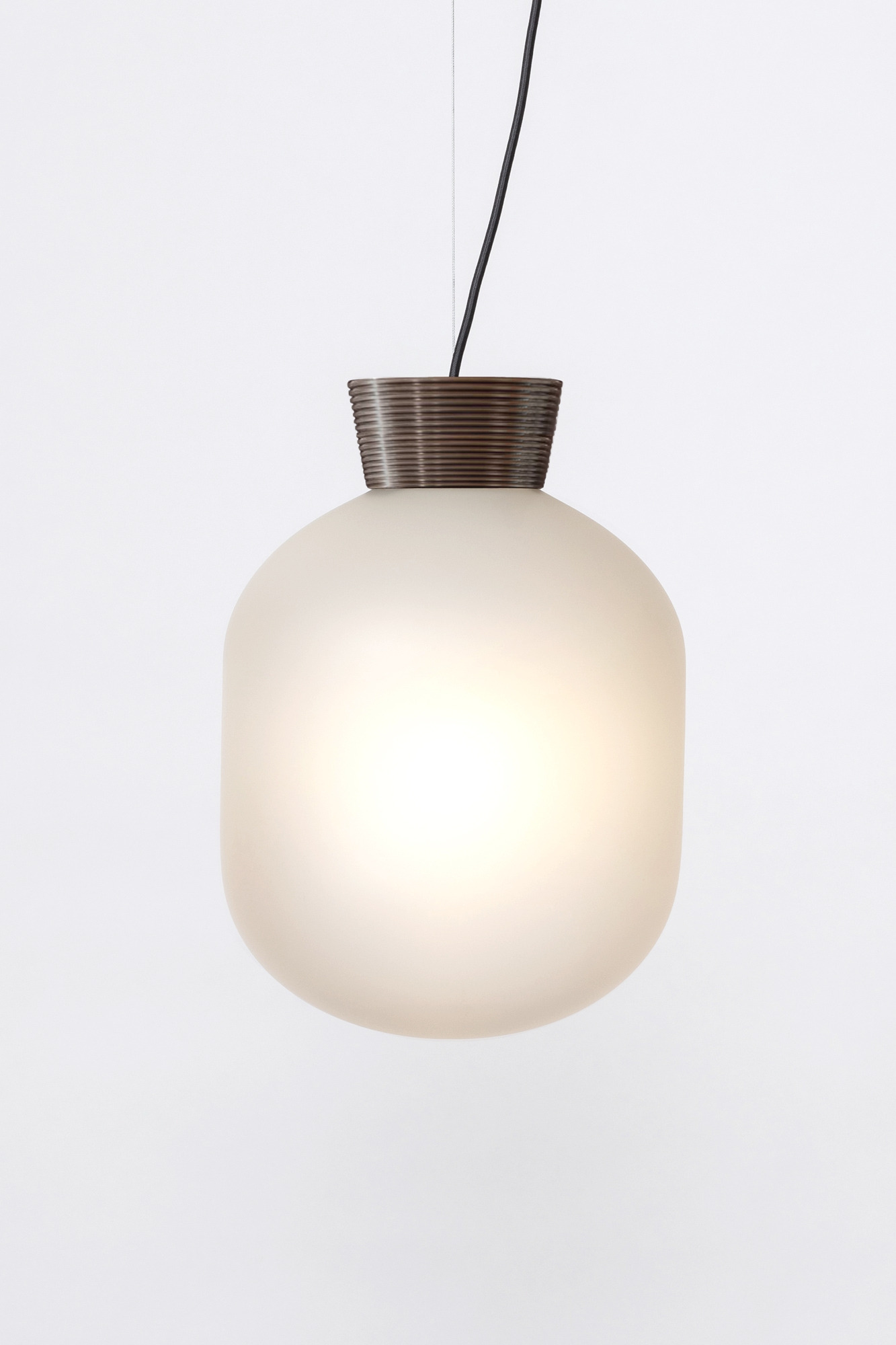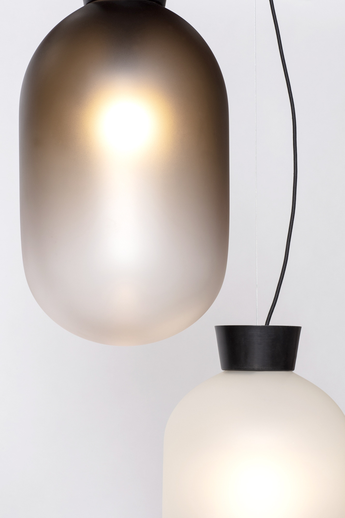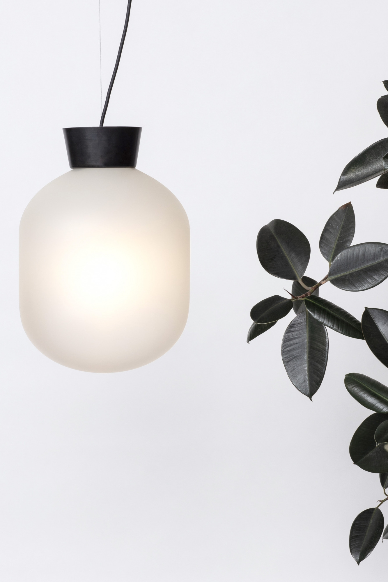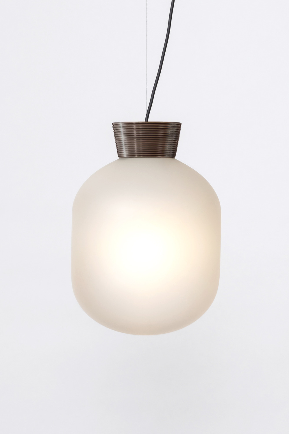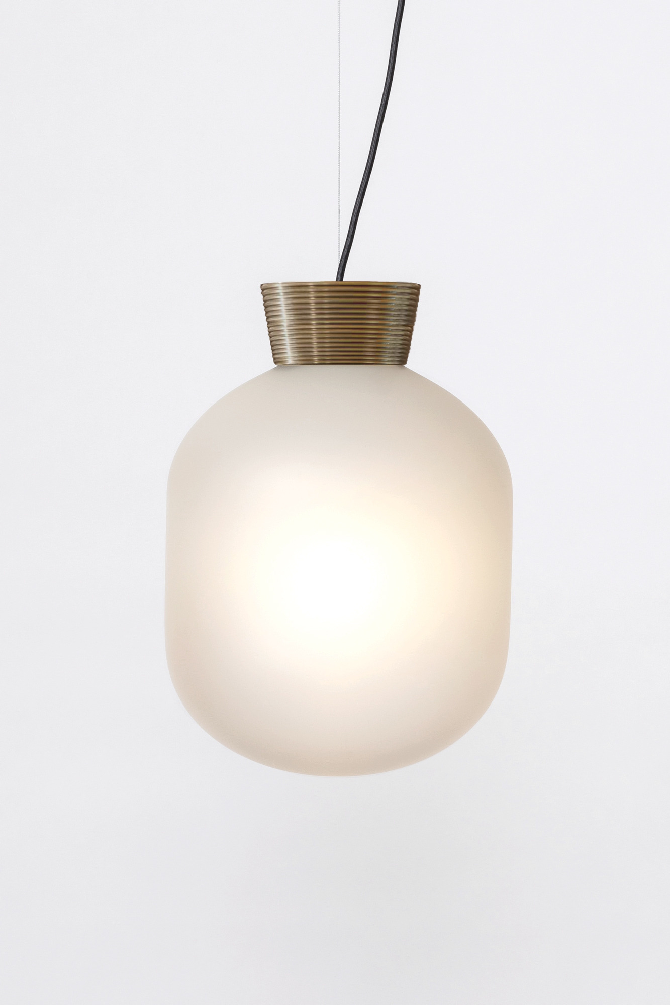 Blackened or Raw Brass, Black cloth cord, Steel cable.