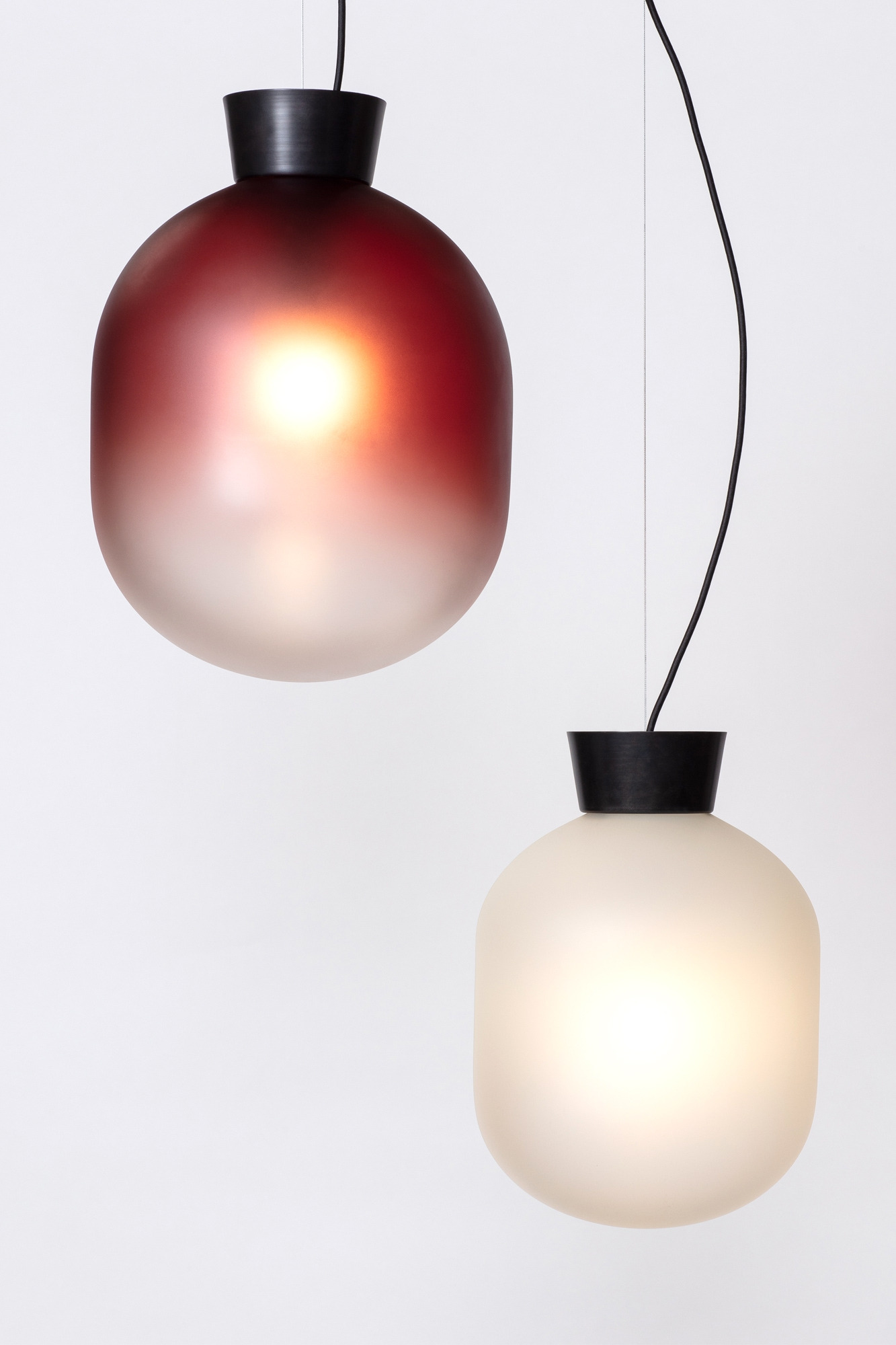 Handblown Sandblasted Glass in Opal, Eel Green or Ruby glass and oval or round shape