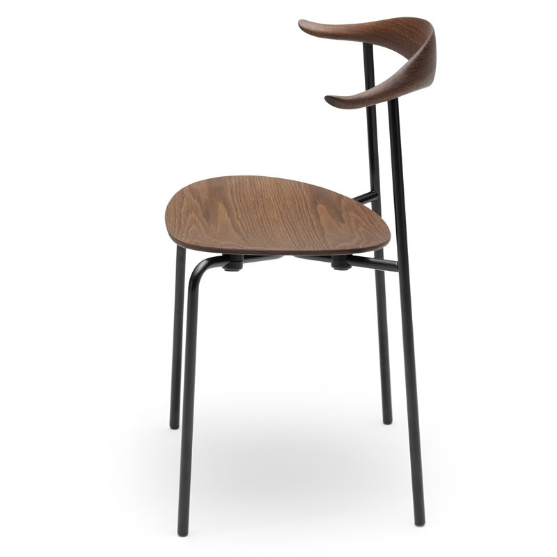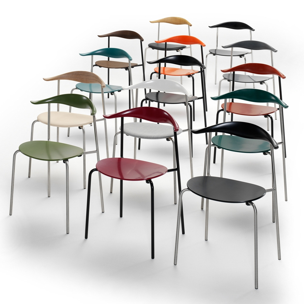 Available in variety of finishes in beech, oak and smoked oak. The frame is available in stainless steel and powder coating in various colors, and the seat with optional leather or textile upholstery.