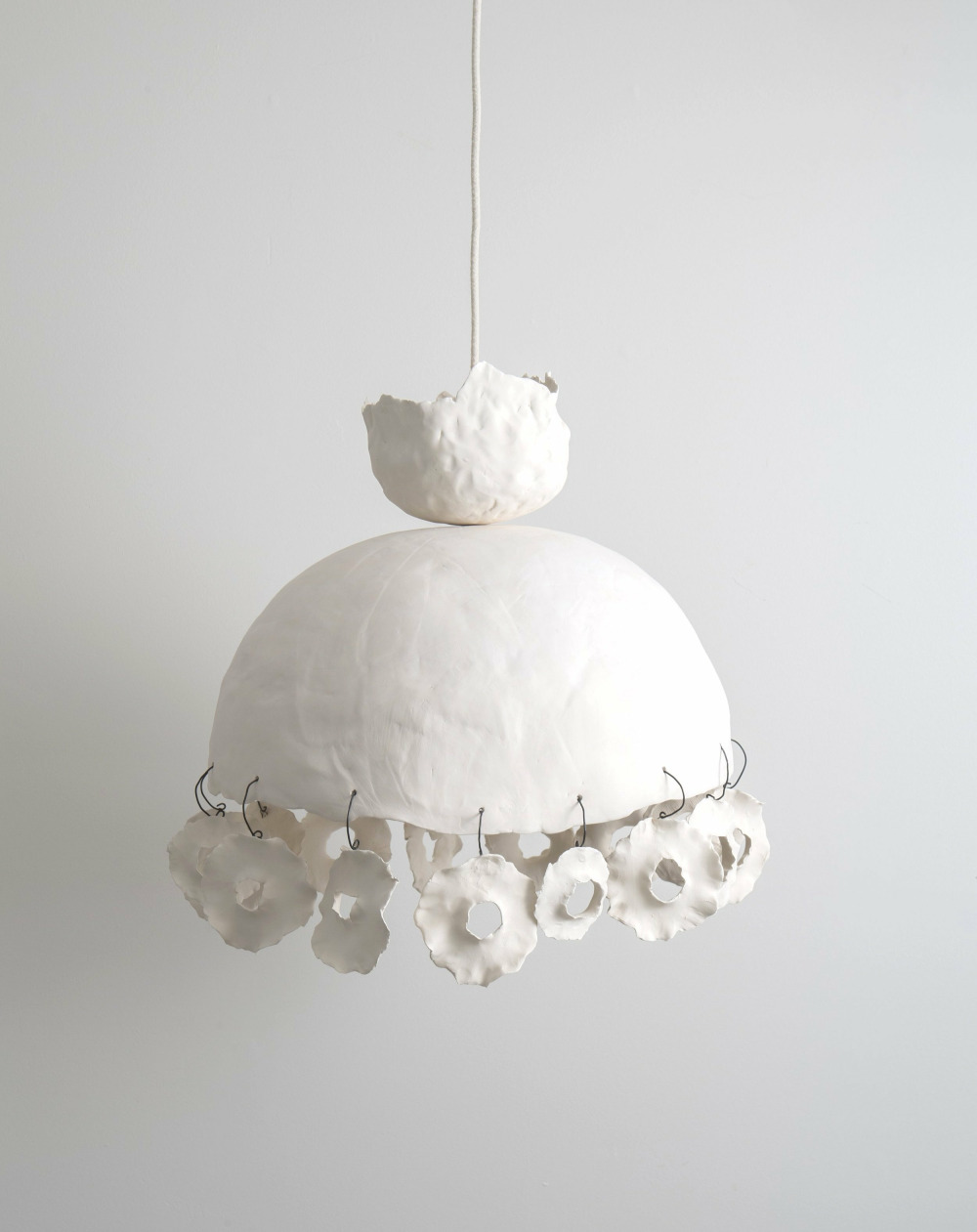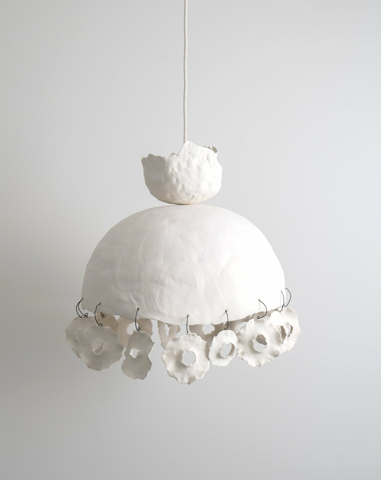 “Ceramics have been a place of surrender and peace, being mostly self-taught has allowed me to spend endless hours in discovery- not only in discovery of the ceramic materials but pushing the limits of lighting and balance and the assembly needed to combine both ceramics and light”.