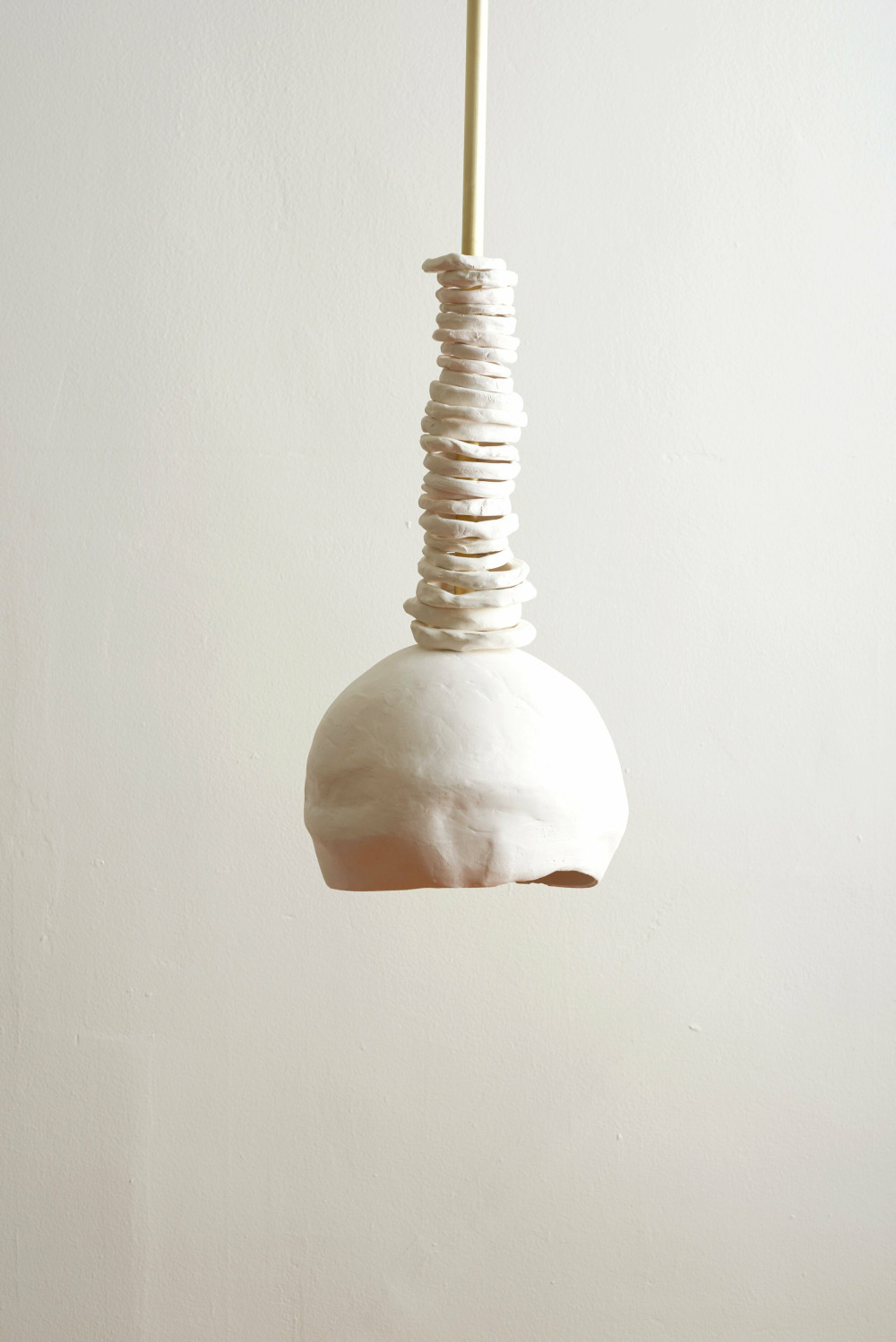 “Ceramics have been a place of surrender and peace, being mostly self-taught has allowed me to spend endless hours in discovery- not only in discovery of the ceramic materials but pushing the limits of lighting and balance and the assembly needed to combine both ceramics and light”.
