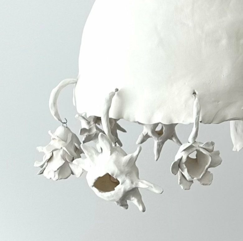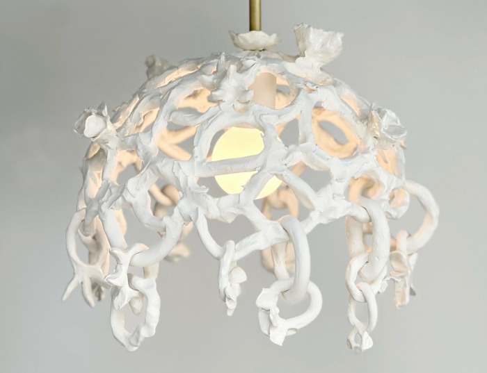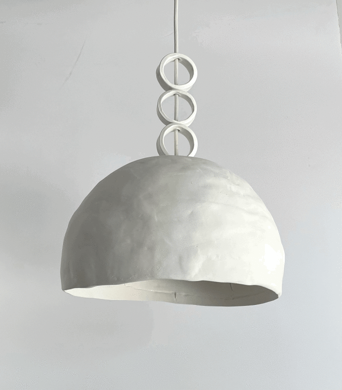 “Ceramics have been a place of surrender and peace, being mostly self-taught has allowed me to spend endless hours in discovery- not only in discovery of the ceramic materials but pushing the limits of lighting and balance and the assembly needed to combine both ceramics and light”.