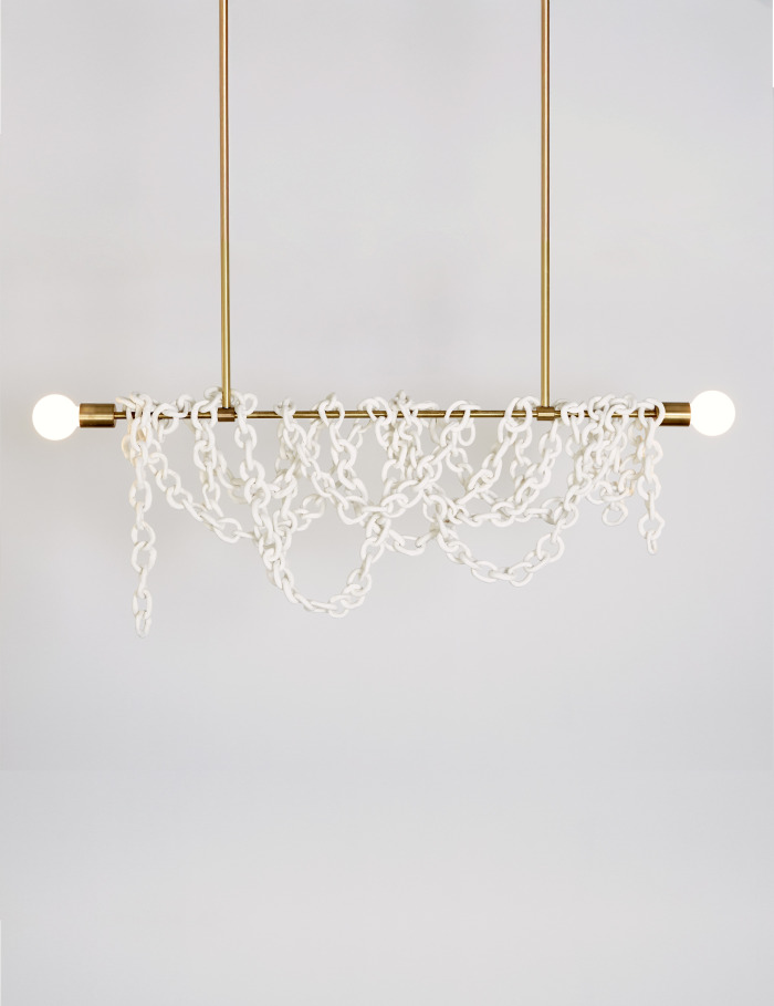To Castle, lighting is the completion point to a space. It is part of the canvas of a room. Her designs are intentionally off balance and should be adjusted according to spatial needs, allowing it to only find an identity and purpose when it is finally home. The journey ends when these sculptural pieces are where they belong
