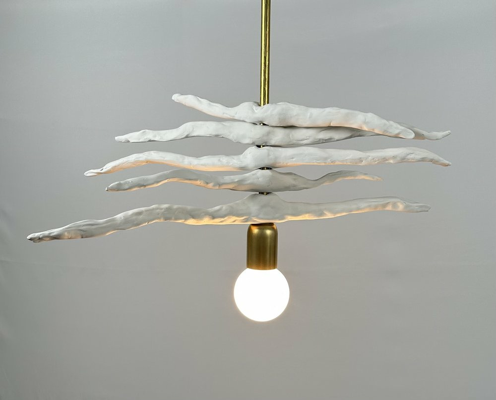 “Ceramics have been a place of surrender and peace, being mostly self-taught has allowed me to spend endless hours in discovery- not only in discovery of the ceramic materials but pushing the limits of lighting and balance and the assembly needed to combine both ceramics and light”.