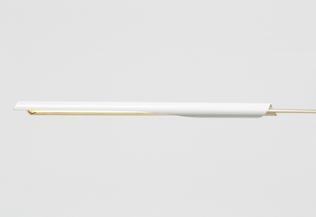 The OTTO One Arm Pendant features a single cantilevered arm extending from a customizable drop with a naturally occurring arc. Both the arm and the drop are formed from tubular brass; the arm is completed by a powder coated aluminum shade containing a dimmable LED source. The drop has a 245 degree range of rotation from the canopy; the shade also rotates 300 degrees.