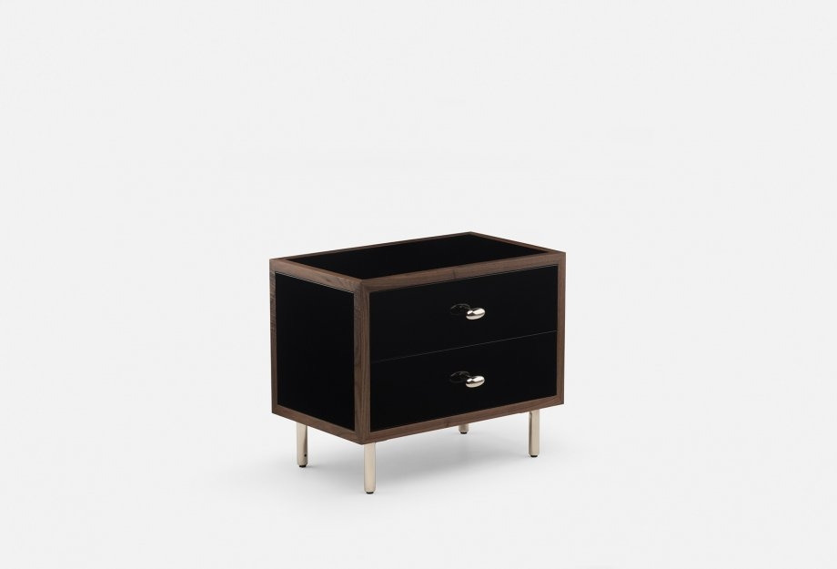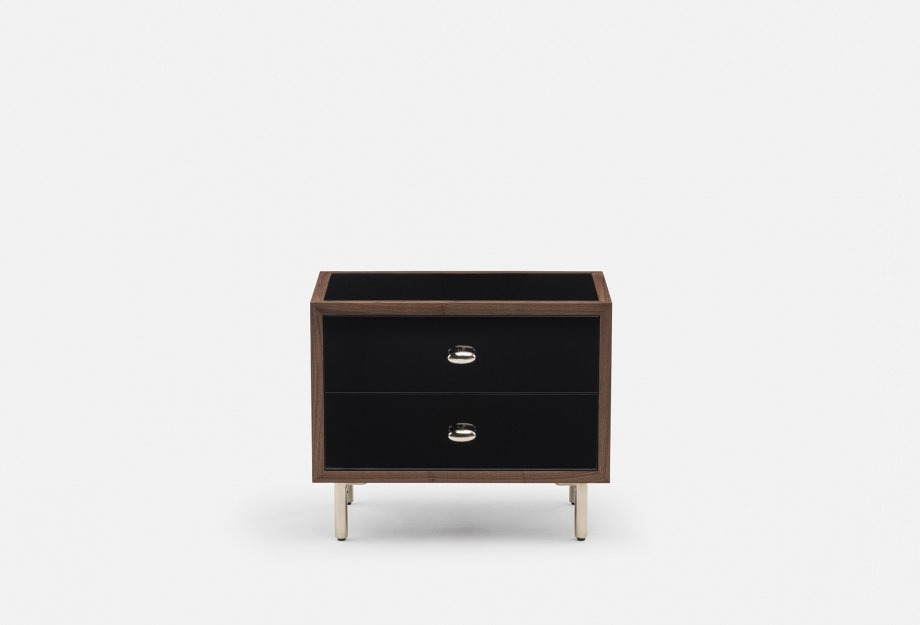 lasson Bedside Chest transcends time, its modern form featuring rich detailing that nods to a more traditional American aesthetic. Polished bronze drawer pulls and legs elegantly complement the cabinet body available in a range of timbers and finishes and painted hdf.