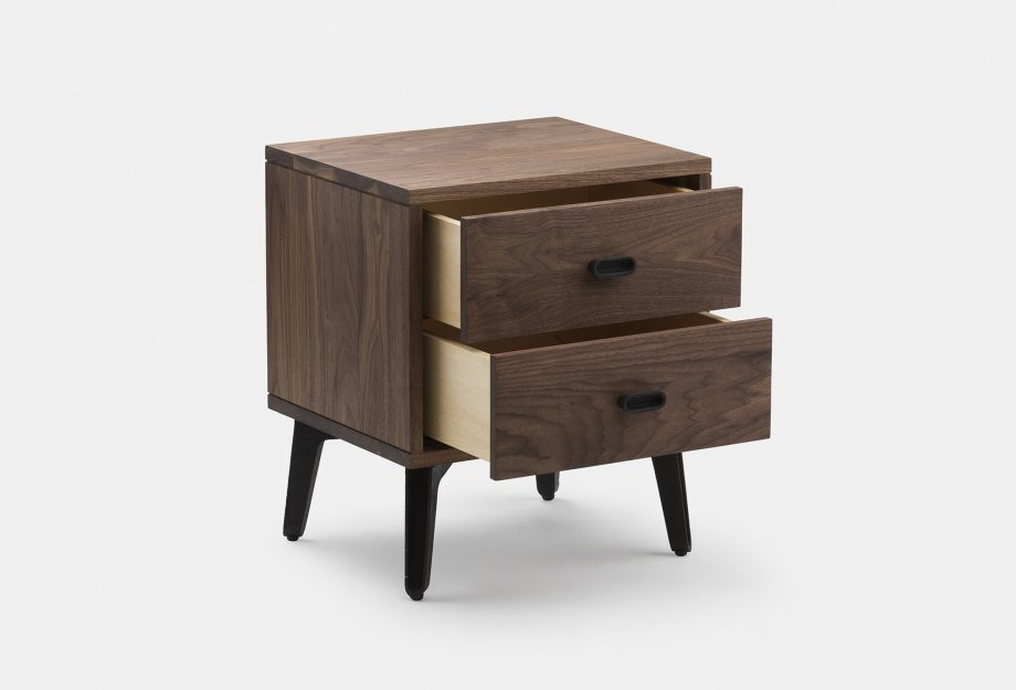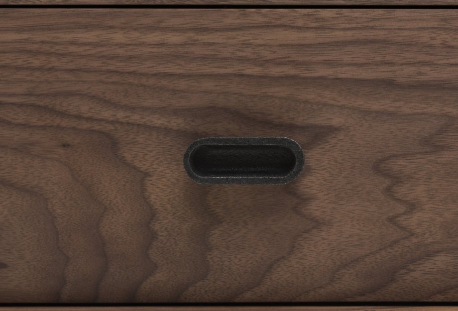 Available in a selection of finishes in ash, oak or walnut. With cast iron legs.