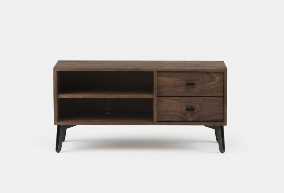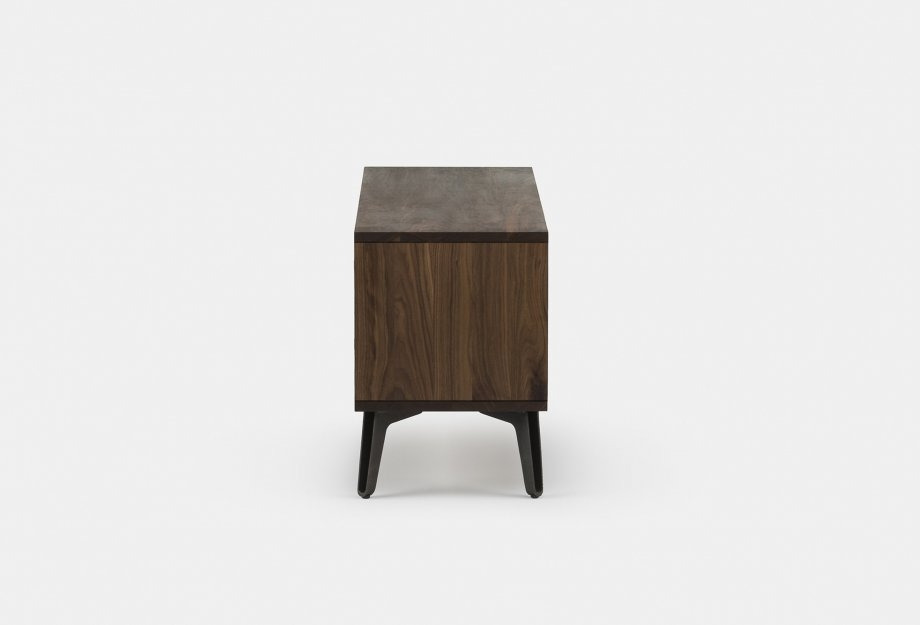Available in a selection of finishes in ash, oak or walnut. With cast iron legs.