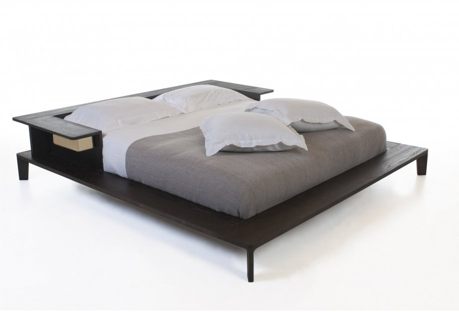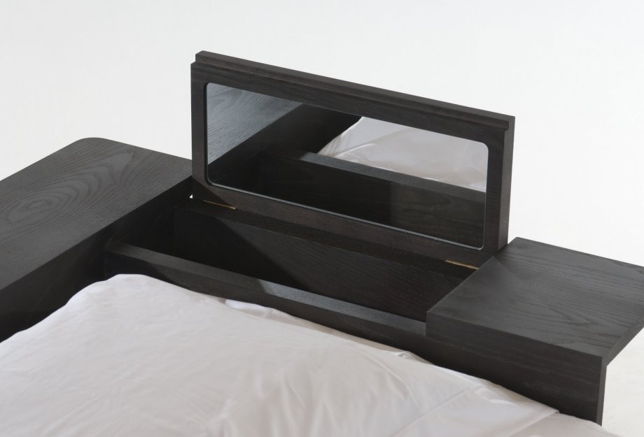 Designed by neri&hu and manufactured by De La Espada for the neri&hu brand. Inspired by Opium beds which have been in China since the Tang Dynasty, Platform is perfect for lazy Sunday mornings with its generous solid wood frame offering space for cups of tea and books. Storage compartments include a solid brass drawer and a timber compartment beneath a fold out mirror.