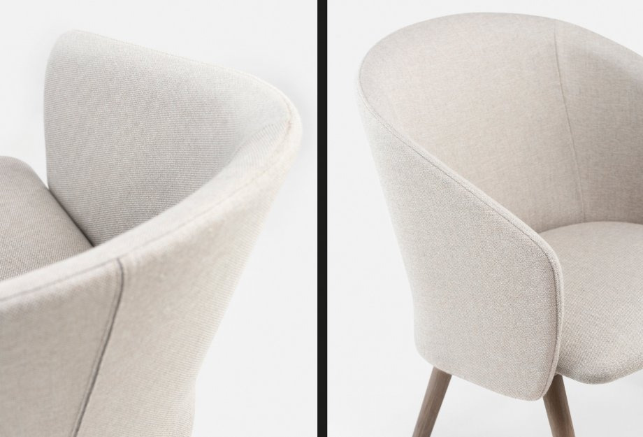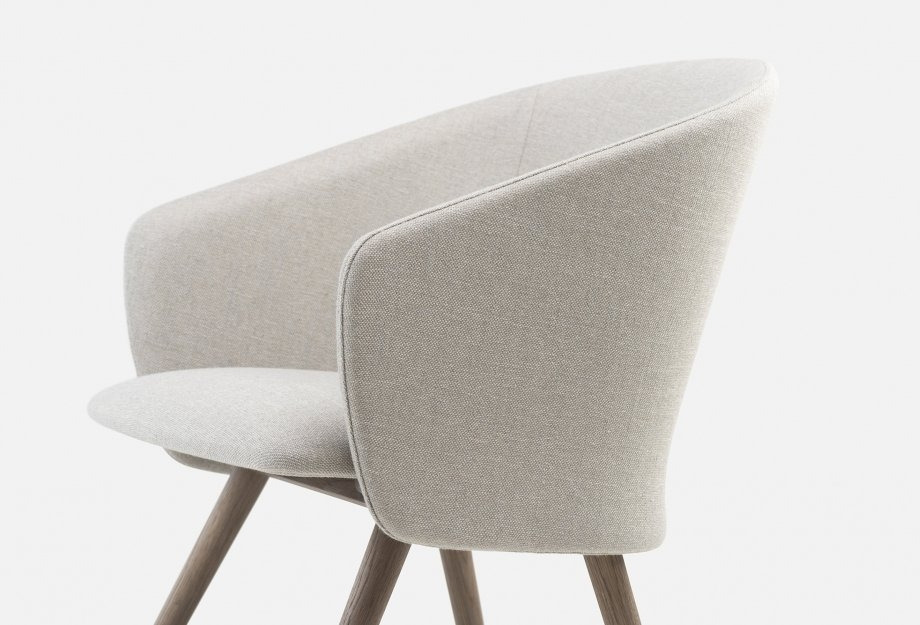 Saia is a family of upholstered shell seating for residential or contract use. The upholstery was designed to be made in two parts to create visual levity and to allow the seating to be upholstered in a single material or a combination of two. The proportions were carefully considered for ergonomics, beauty, and performance in a variety of environments.