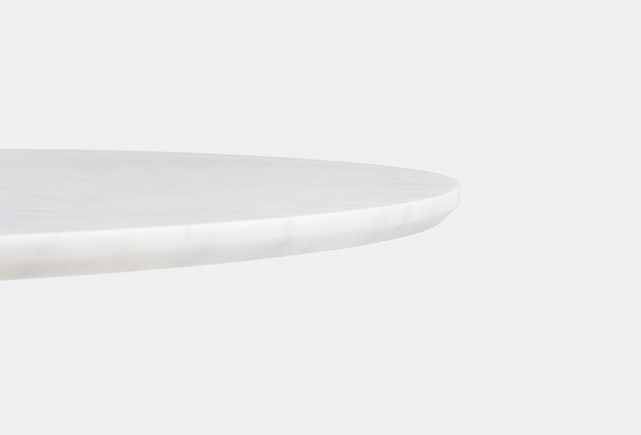 Tabletop in timber or a choice of Carrara marble, Negro Marquina marble, Rosa Negrais marble, or Ataija Creme limestone.  Available in a selection of finishes in ash, oak or walnut.