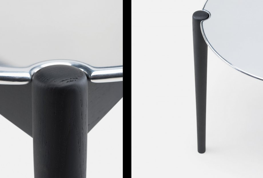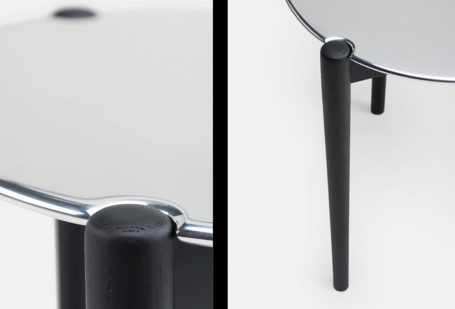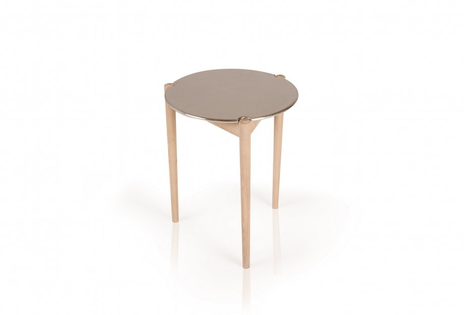 Sidekicks is a series of small occasional tables that live throughout the home to accommodate our different activities. They are the right height and dimension to sit next to sofas and chairs, for drinks and snacks, papers and magazines, or a short time on the laptop. Available in various sizes, with a tabletop of polished aluminium set upon solid wood legs.