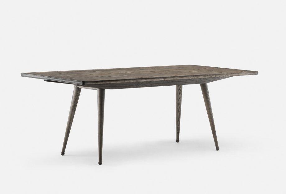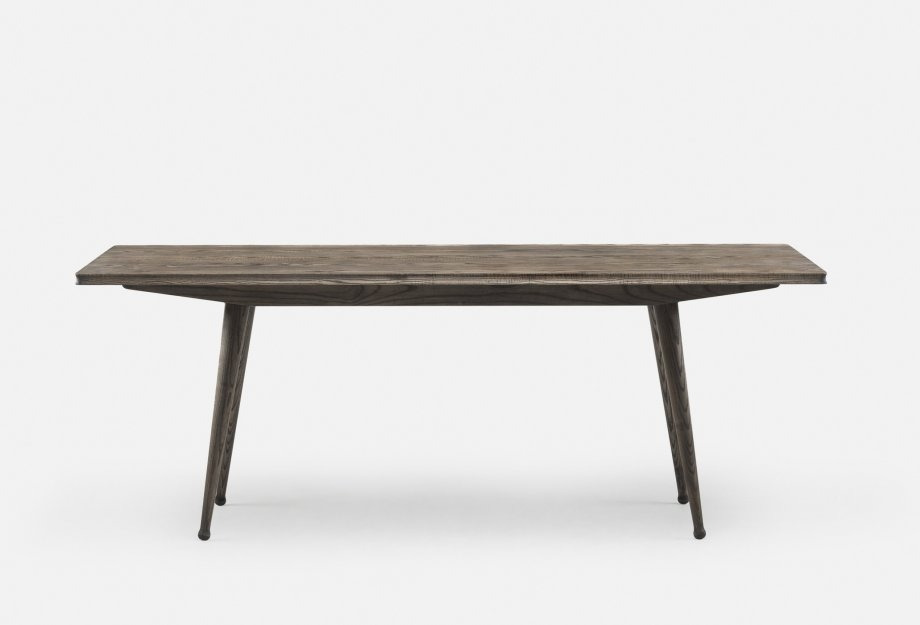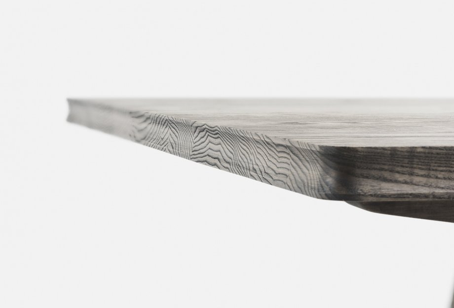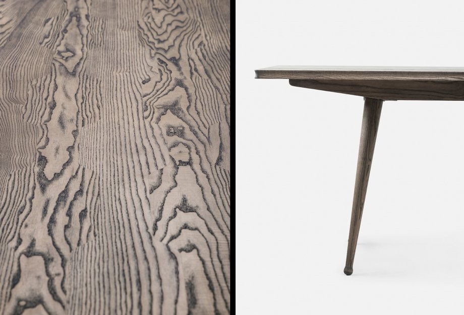 Available in American black walnut, American white oak, or European Ash in a range of finishes, as a single timber/finish or timber combinations including: Danish oiled walnut and ash, Danish oiled walnut and oak, black oiled walnut and ash, or white oiled oak and ash. Tables with timber combination tabletops have legs in the same timber/finish as the outermost planks on the tabletop.