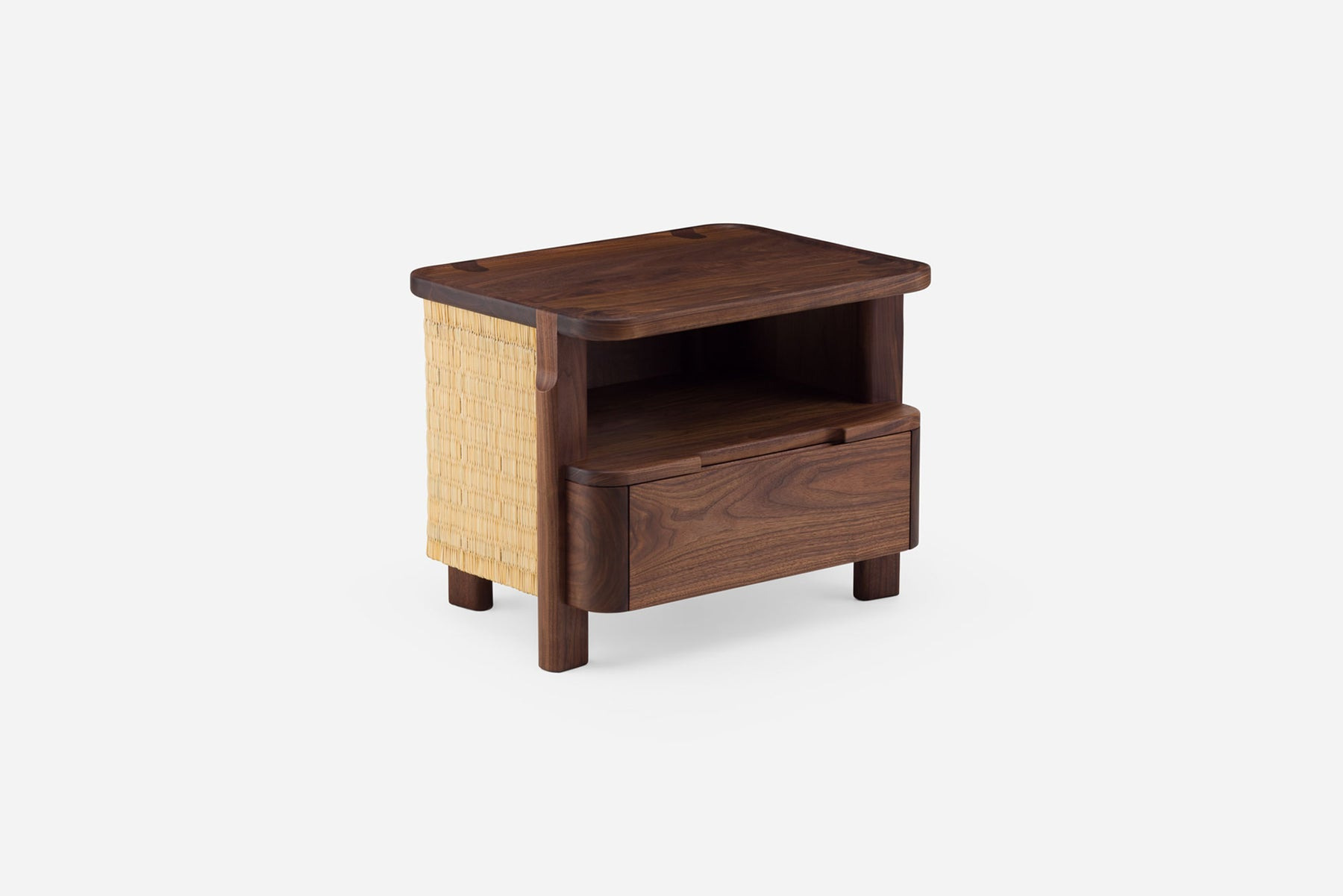 Crafted from solid timber and junco, the Twenty-Five Bedside Chest is the perfect companion for the Twenty-Five Bed. The side panels are woven on a loom at the historic Portuguese basket-making workshop Toino Abel before being applied to the beautifully detailed solid timber frame.