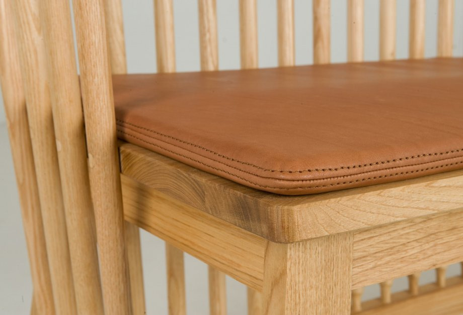Available in a range of fabric and leather options with ties in three locations spaced lengthwise across the bottom of the pad for the purpose of attaching the seat pad to the seat of the bench or settle.