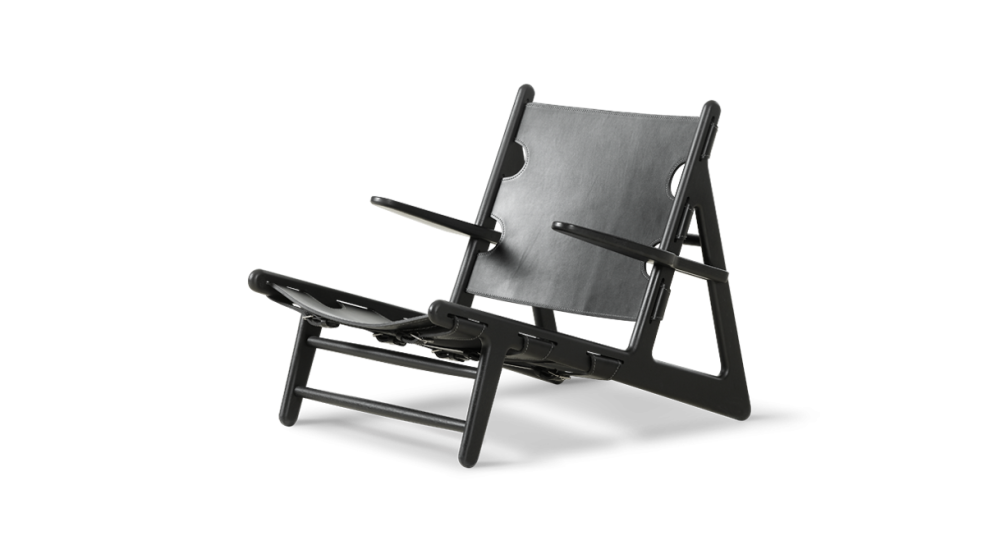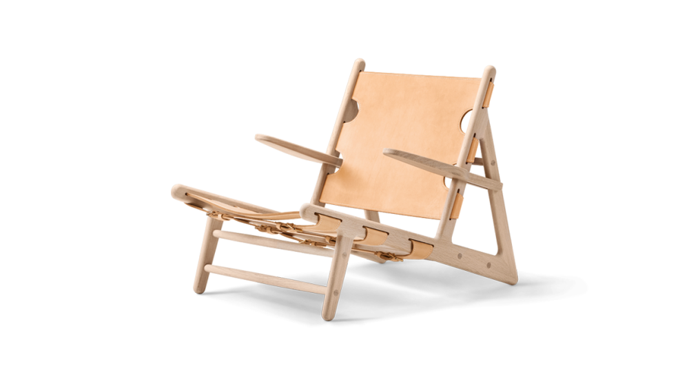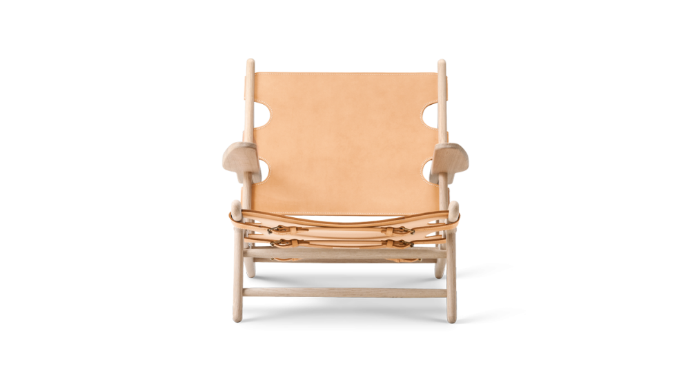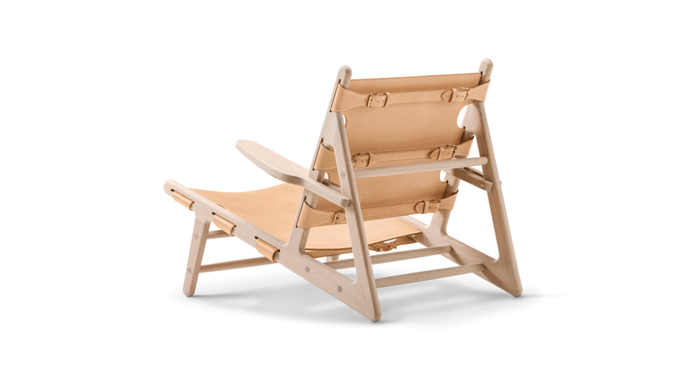 Designed in 1950, The Hunting Chair was Mogensen's first work with exposed wooden framing and saddle leather. The seat is adjustable with solid brass buckles, and the chair is easy to move around to different locations in the home.