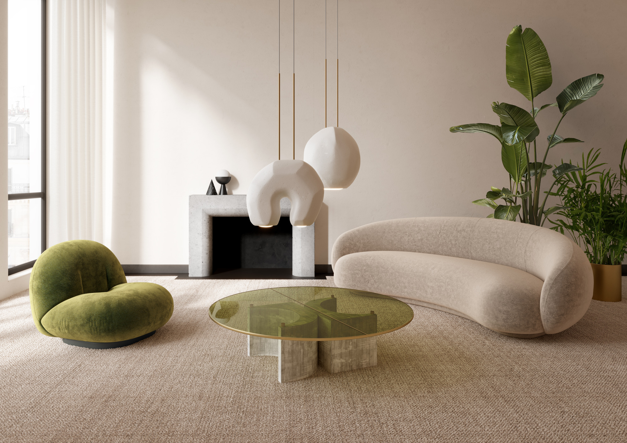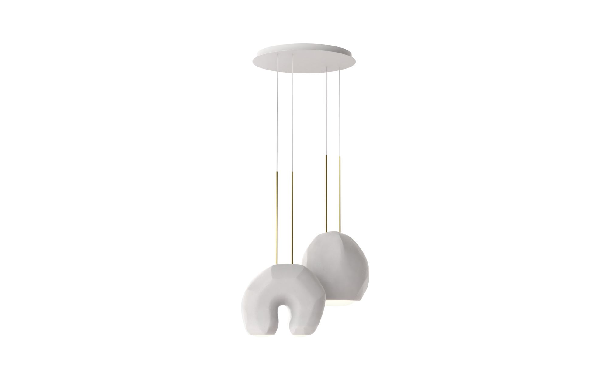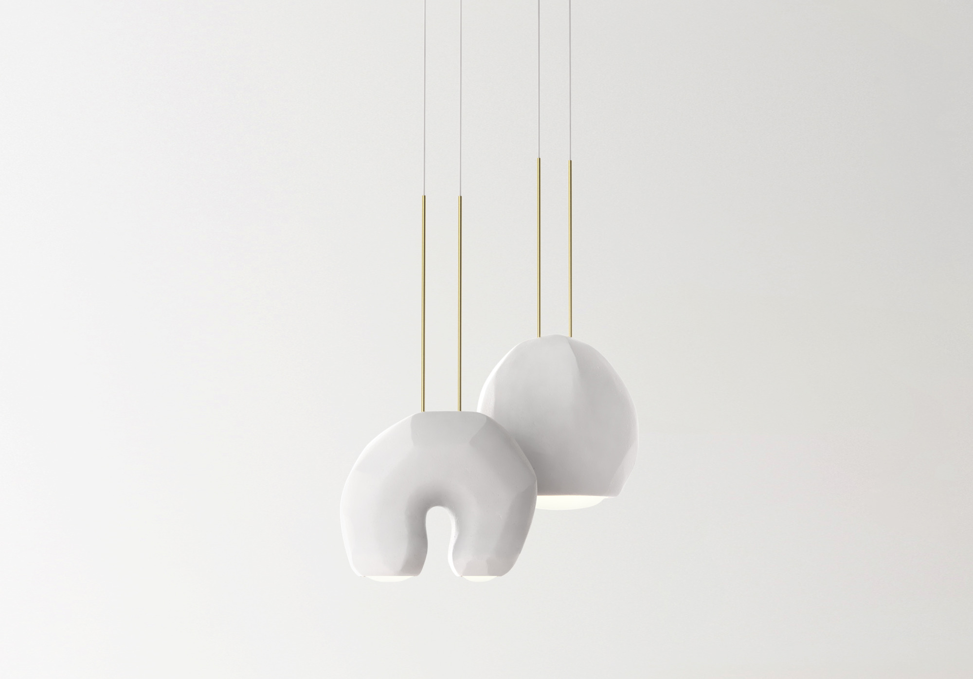Moonstone is a collection of multifaceted pendant lamps inspired by organic rock sculptures.