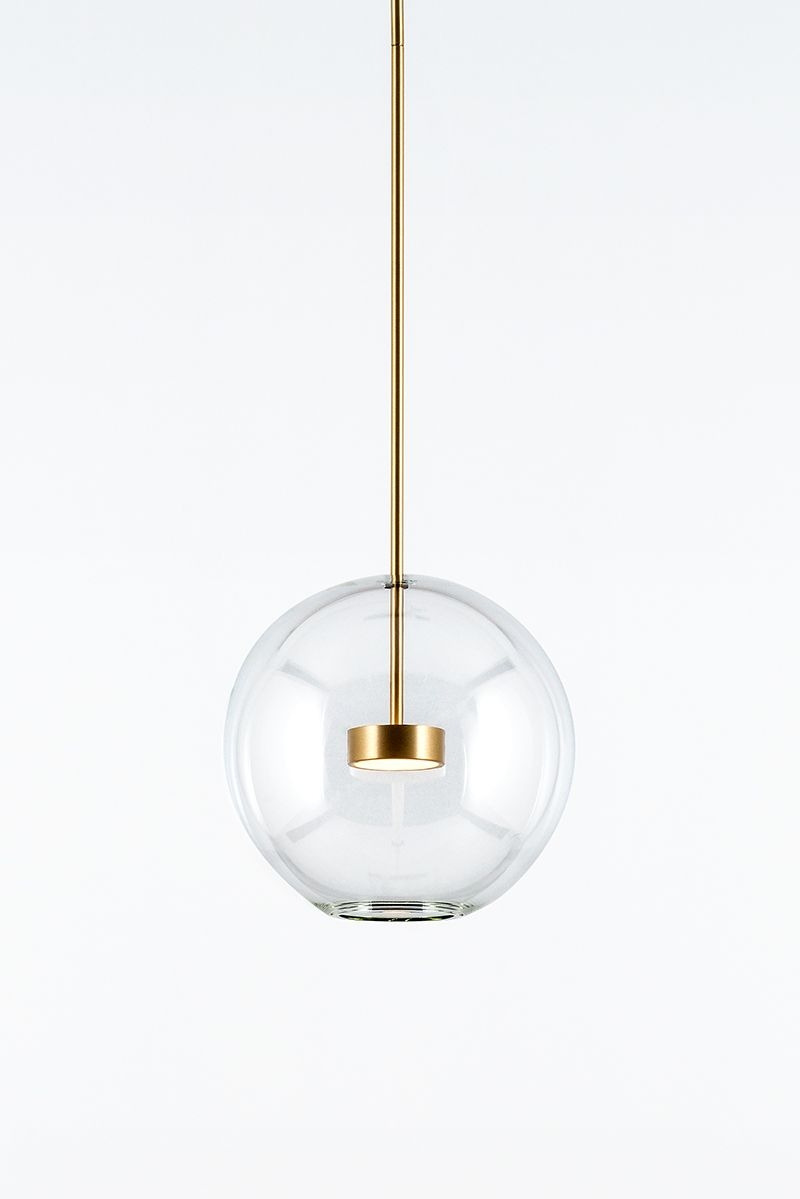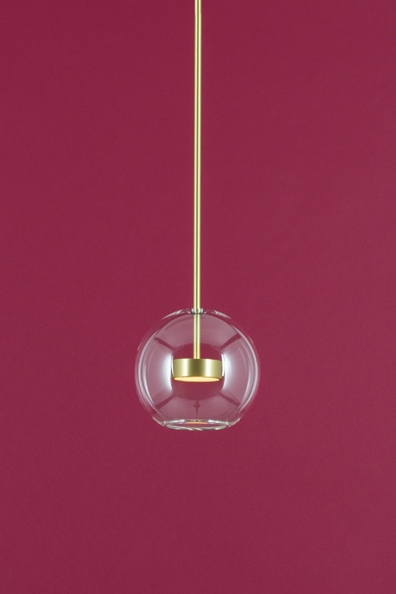 Soffio is a lamp of simple and elegant design, characterized by the contrast between the evanescence of one blow that generates the sphere of glass and the solidity of the structure that supports it: as light as a soap bubble, the sphere floating in the air, surrounds the light source.