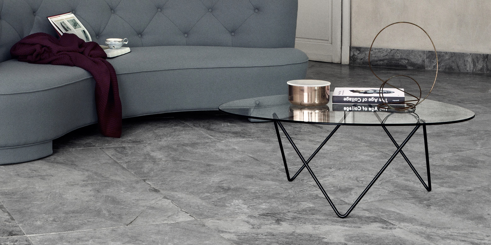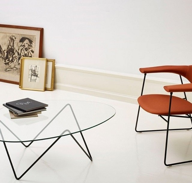 Glass top with Polished Brass, Polished Chrome or Semi-Matte Black base