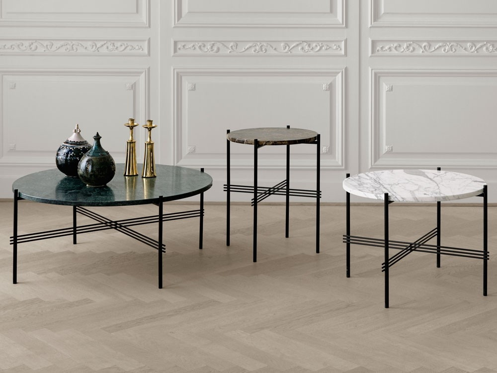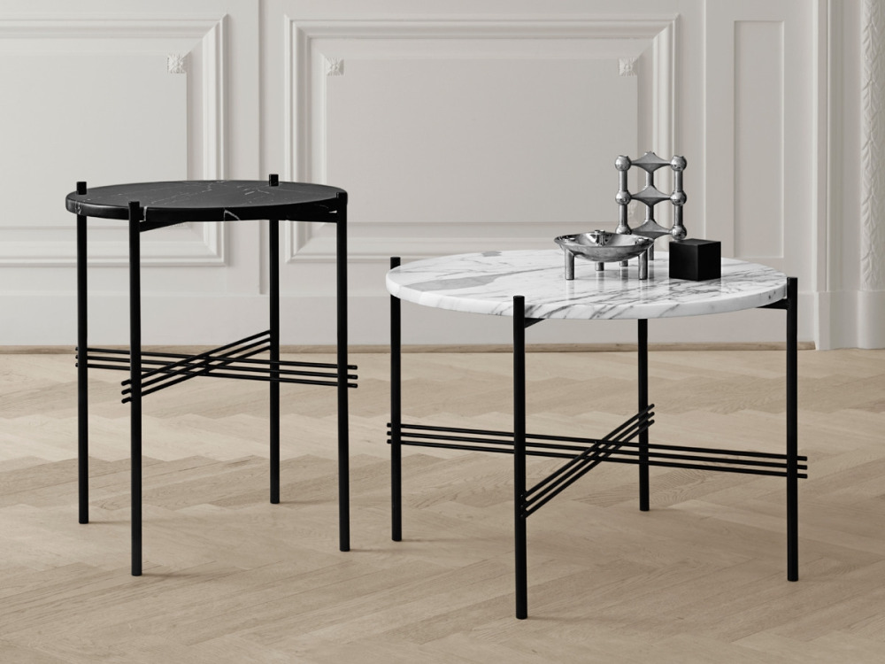 The TS Coffee Table creates a sophisticated and sculptural aesthetics for any room with its characteristic slender legs, beautifully crossing details and contrasting solid table top.