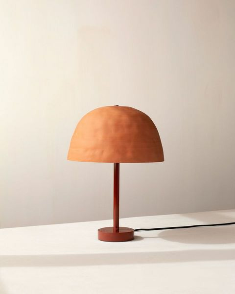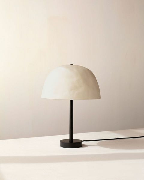 Both soft and serious, the Dome Table Lamp pairs a textured ceramic shade—slip-cast in homage to hand-coiled pottery—with a machined metal base, each available in a range of finishes to mix and match.