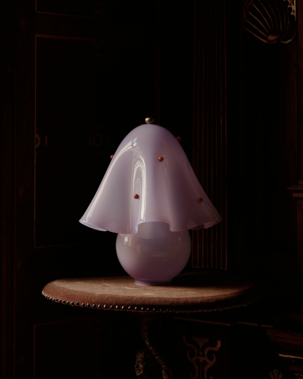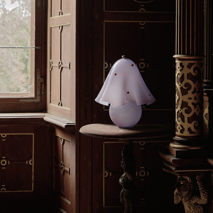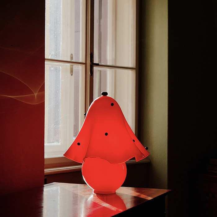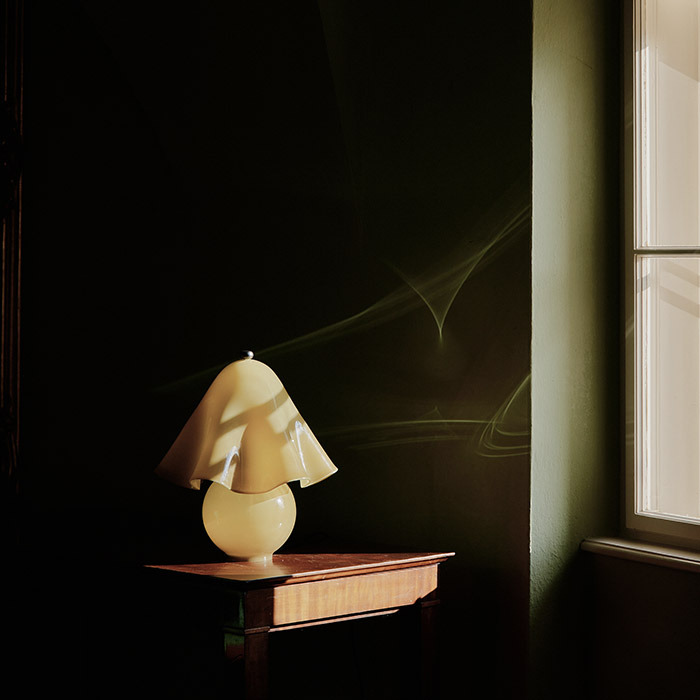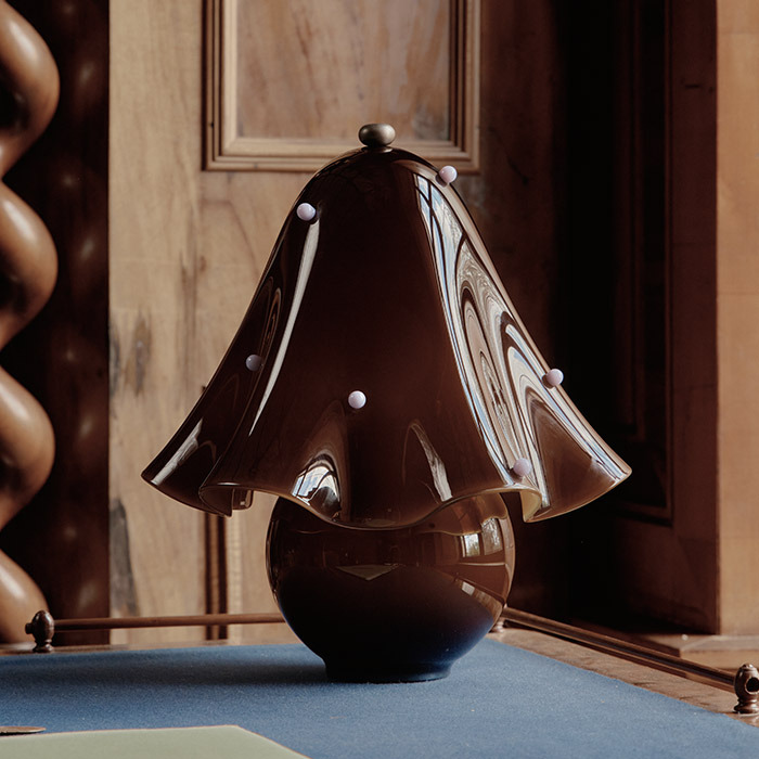 An alluring accent that brings Fazzo’s signature waves to the table. Made using the centuries-old fazzoletto technique, its hand-spun glass shade is paired with a hand-blown base, hand-finished brass details, a dim-to-warm bulb, and the option of individually crafted, decorative glass dots.