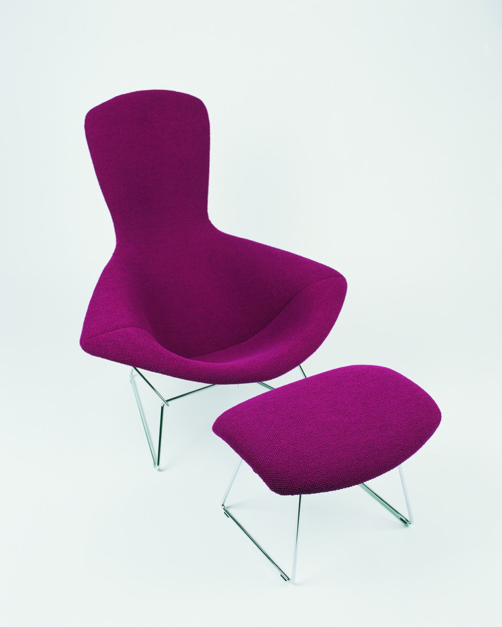 Innovative, comfortable and strikingly handsome, the chair’s delicate filigree appearance belies its strength and durability. In Bertoia’s own words, “If you look at these chairs, they are mainly made of air, like sculpture. Space passes through them.”