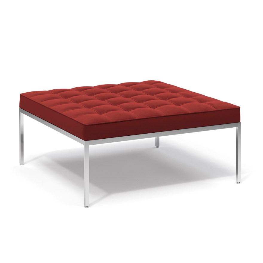 Used as a bench, ottoman or coffee table, this unique bench brings a softer sit and new size to the Florence Knoll Lounge Collection. Consistent with all of her designs, the square bench has a spare, geometric profile that reflects the objective perfectionism and rational design approach Florence Knoll learned from her mentor, Mies van der Rohe.