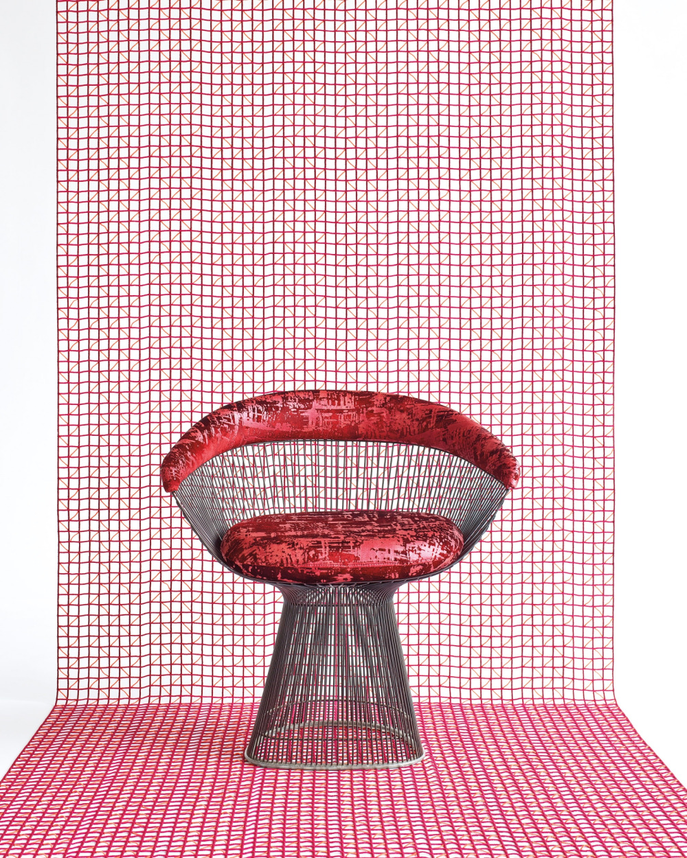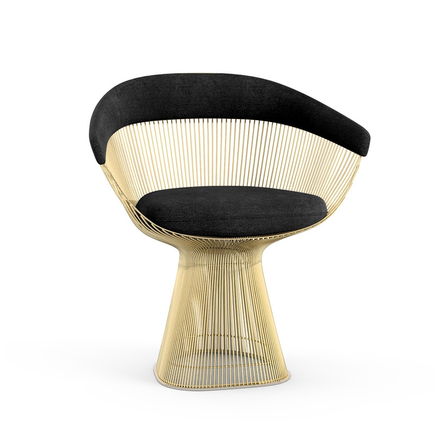 In the 1960s, Warren Platner transformed steel wire into a sculptural furniture collection, thus creating a design icon of the modern era. The furniture’s unique, harmonious forms are produced by welding curved vertical steel wire rods to circular frames, producing a moiré effect and capturing the decorative, gentle and graceful quality that Platner sought to achieve. Metal components are available in two finishes: polished nickel or metallic bronze with a clear protective coating. The seating collection includes a side chair and a lounge chair with complementary stool.