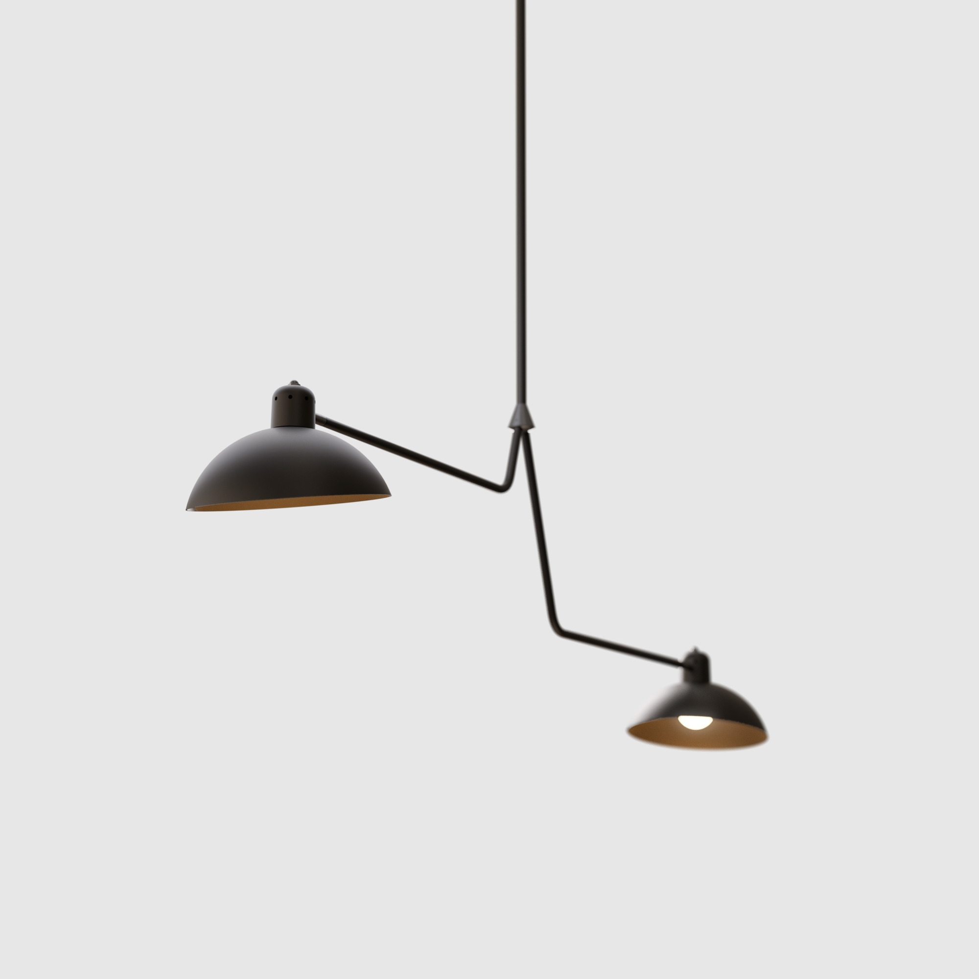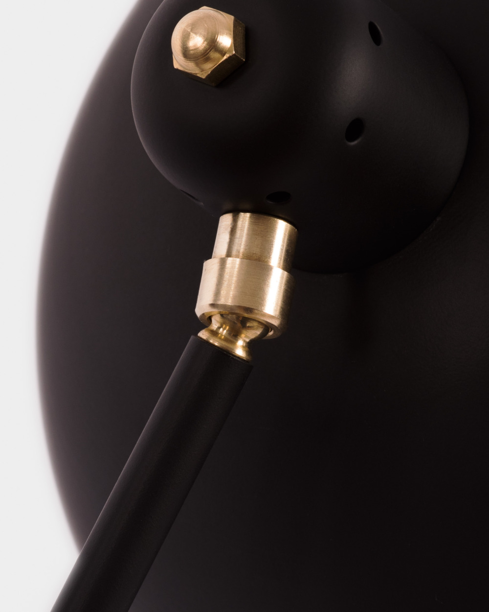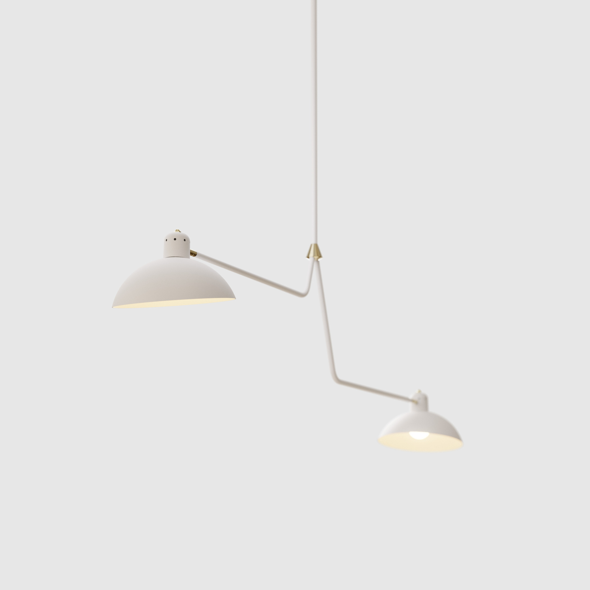 The Waldorf Collection combines an open hemispherical shade with a cylindrical socket cover. This composite shade is deployed in suspension and wall-mounted configurations with natural brass and powder coated rods. Moving parts add flexibility to the crisp, streamlined forms of this collection.