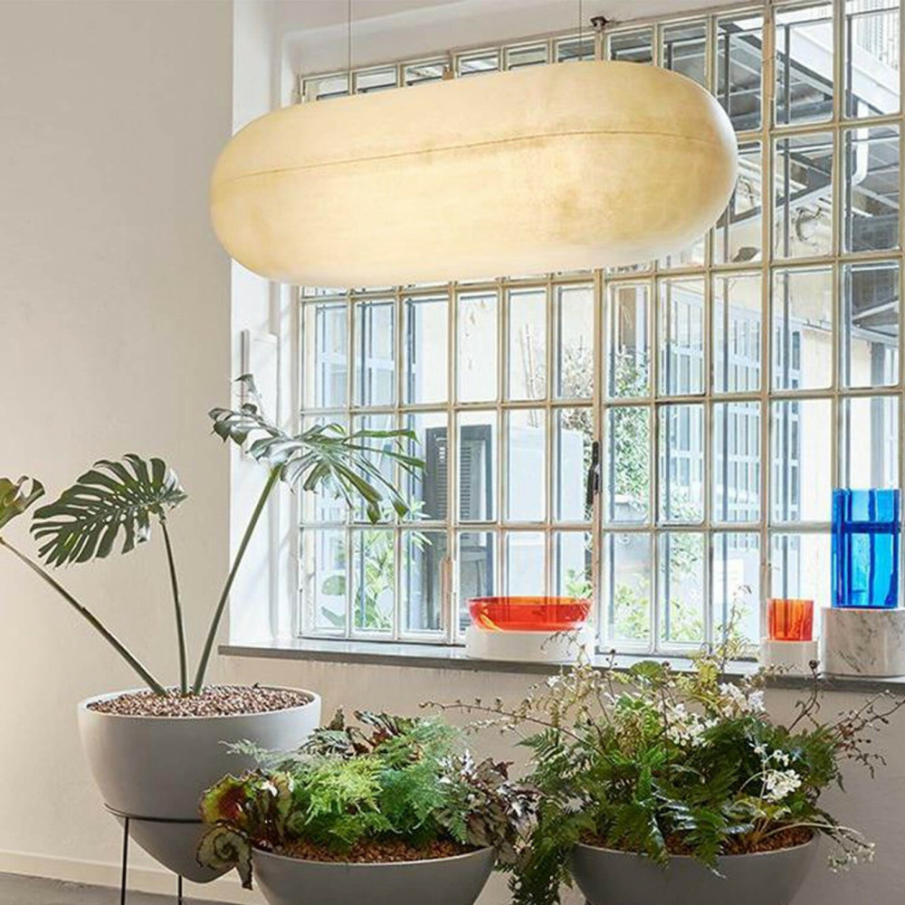 Designed by Faye Toogood, Puffball, a collection of minimal lamps, draws inspiration from the rounded caps and columned stalks of wild mushrooms and toadstools. The chunky silhouettes, made of raw fiberglass and tumbled or painted aluminum, give off a warm luminescent glow.