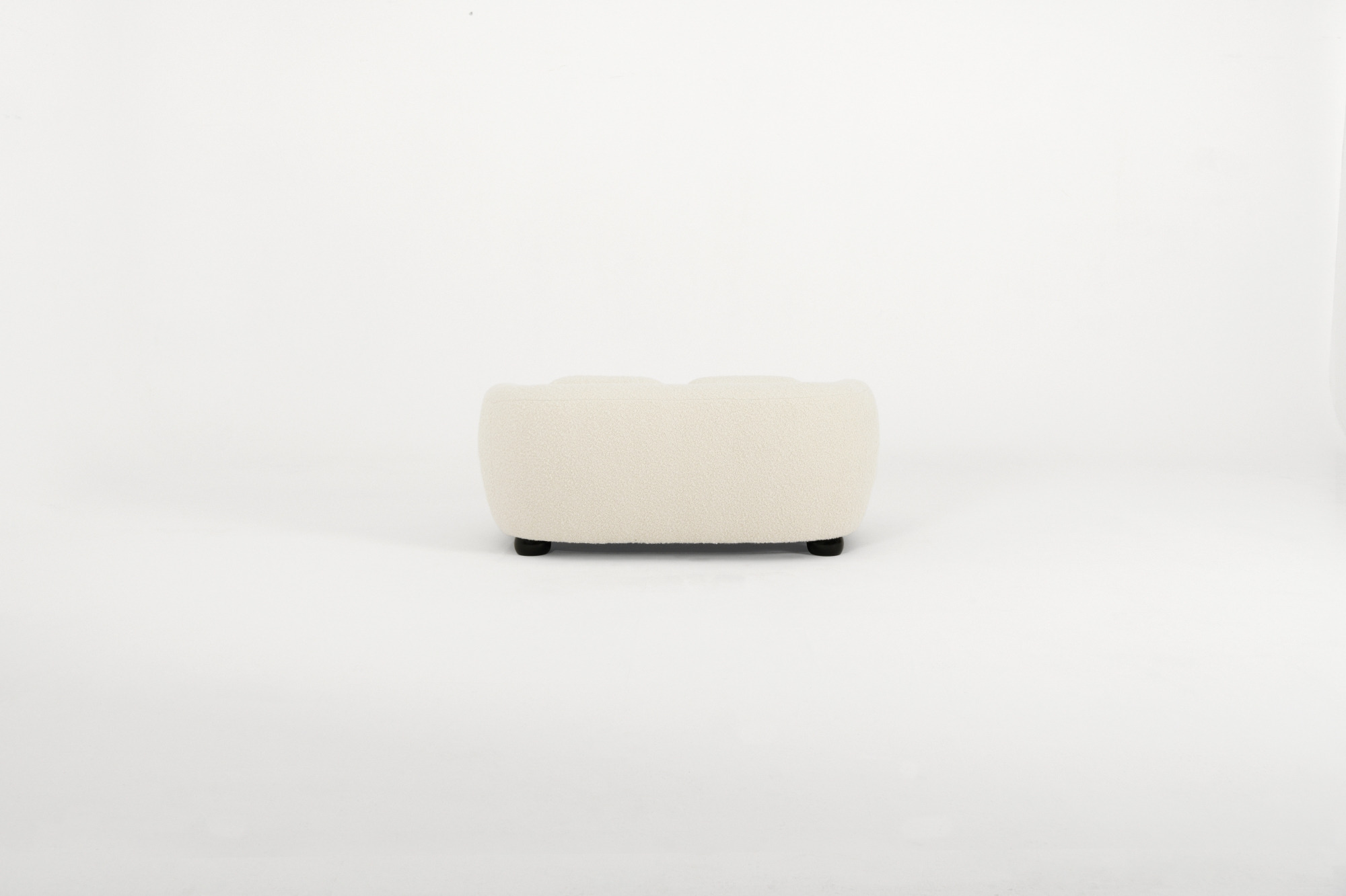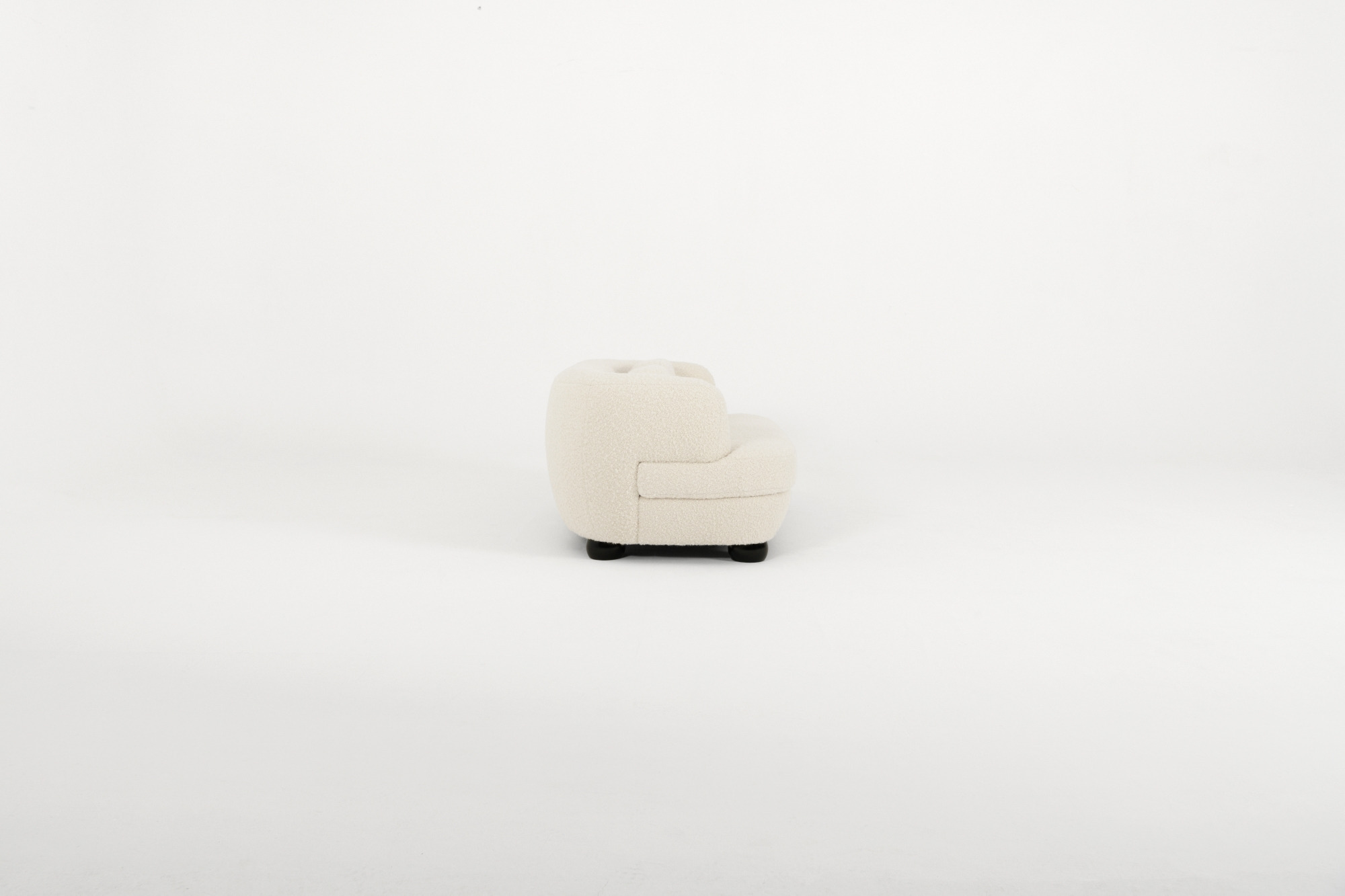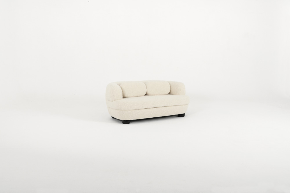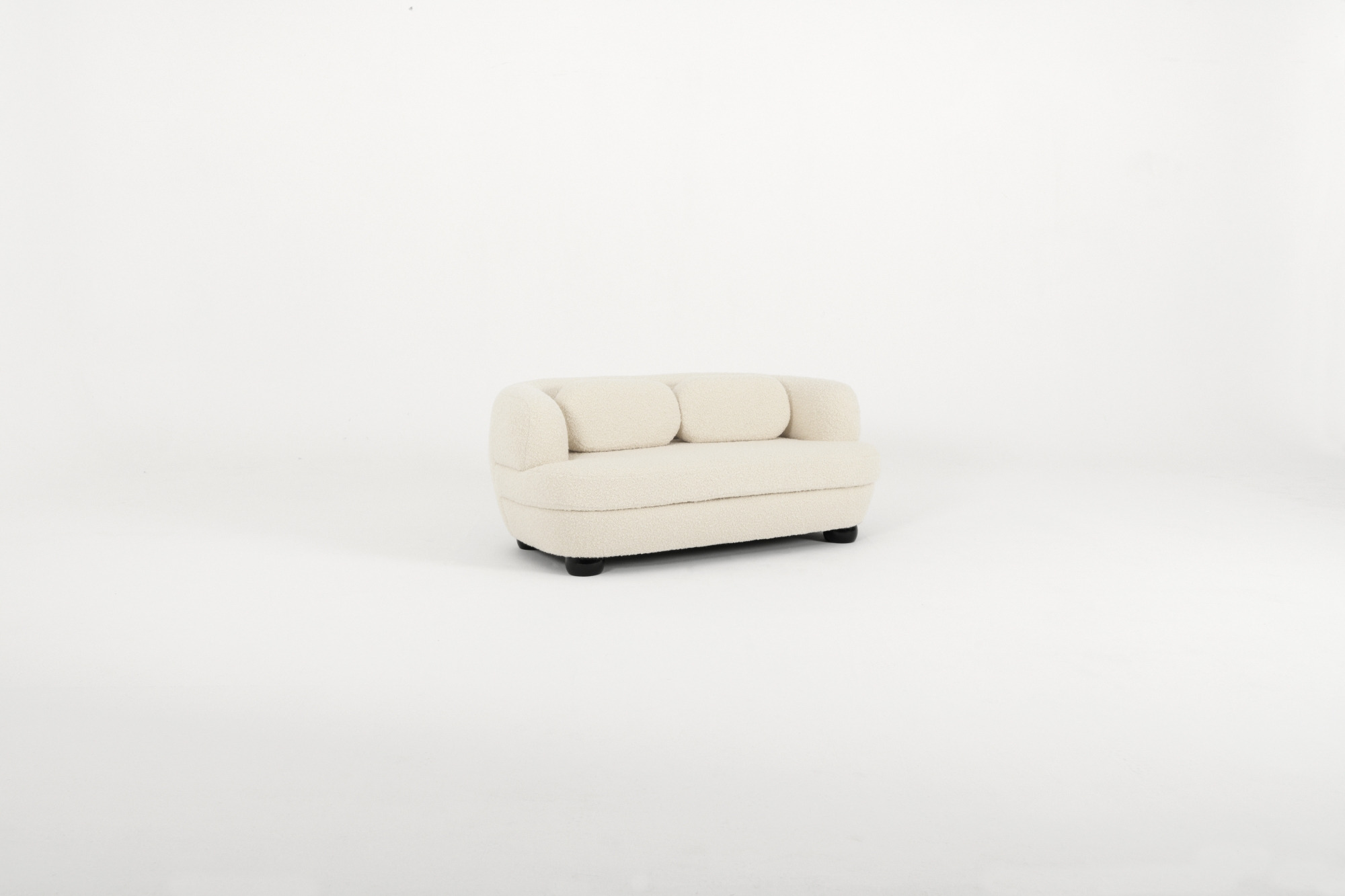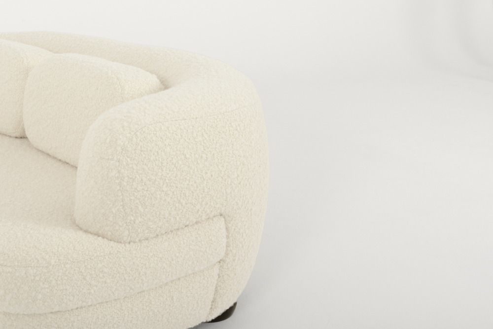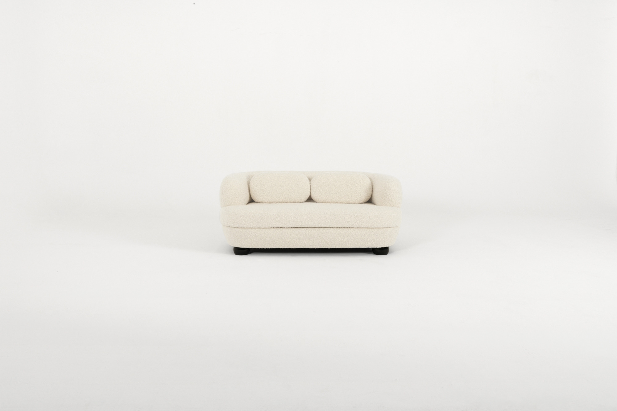 A playful take on a loveseat, the large curved back of this sofa envelopes two seats in comfort and privacy.