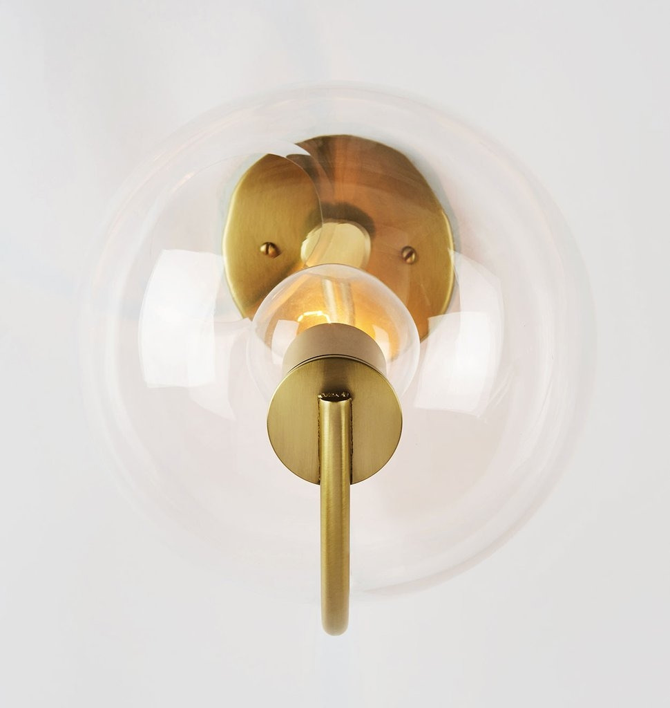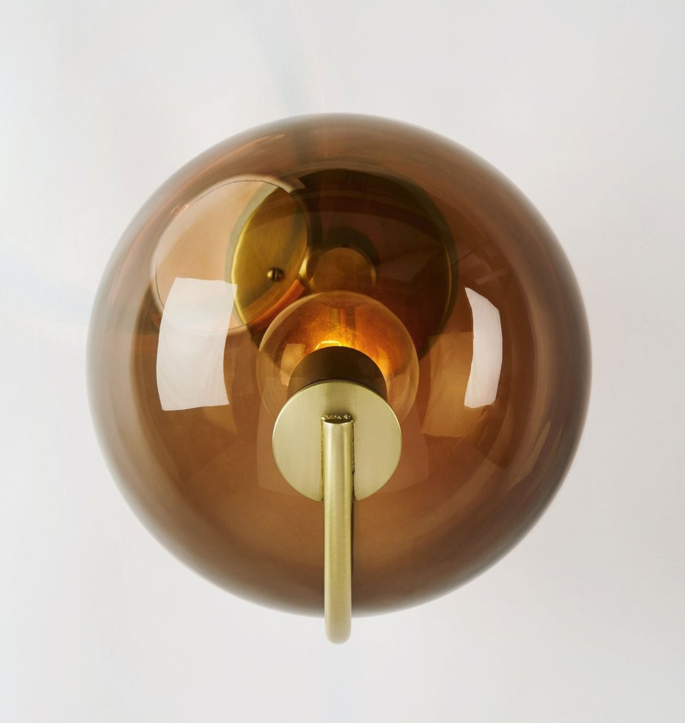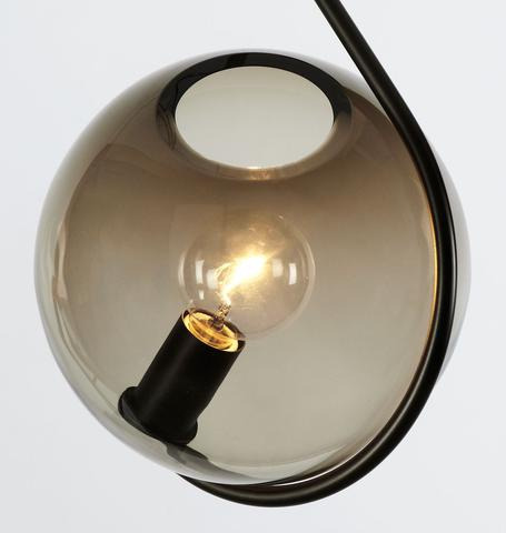 Jason Miller's Fiddlehead derives its name from sprouting ferns. One end of Fiddlehead's long, furling arm gently balances a hand-blown glass globe; the other uses the wall or ceiling as a counterbalance.