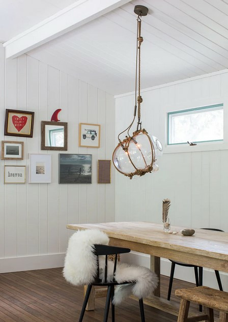 Clear or opal glass with marine hardware and natural or khaki rope.